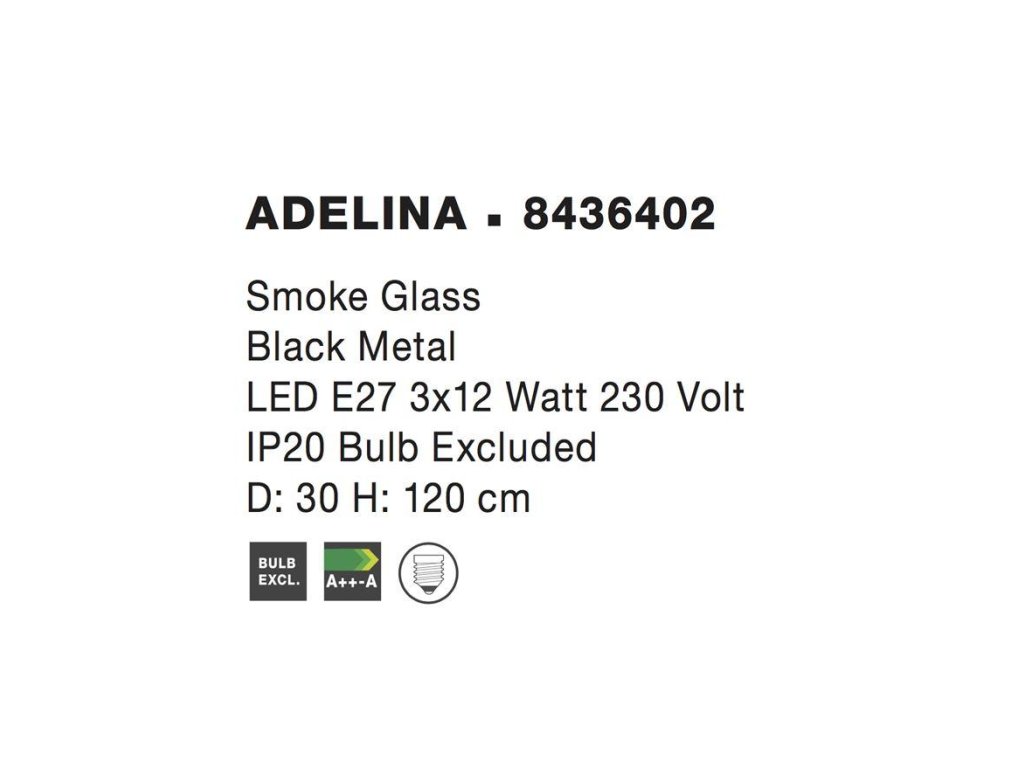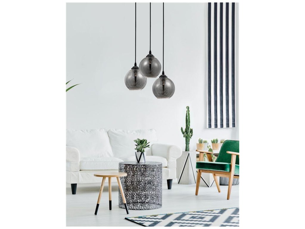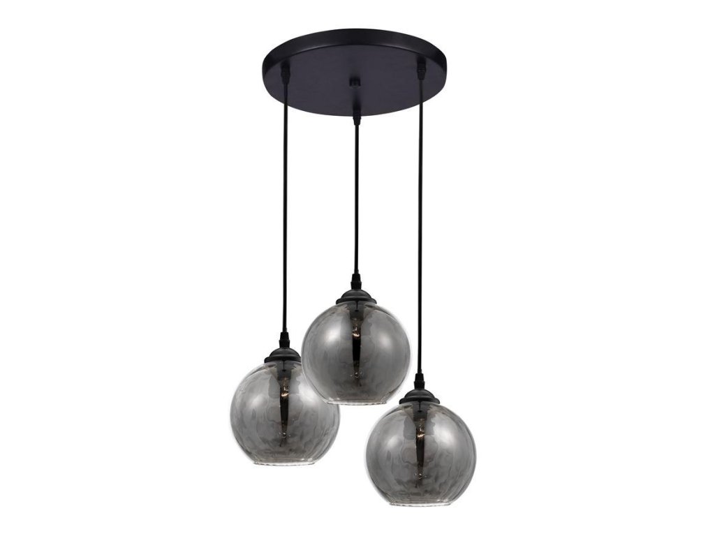 Závesné svietidlo ADELINA dymové sklo čierny kov E27 3x12W