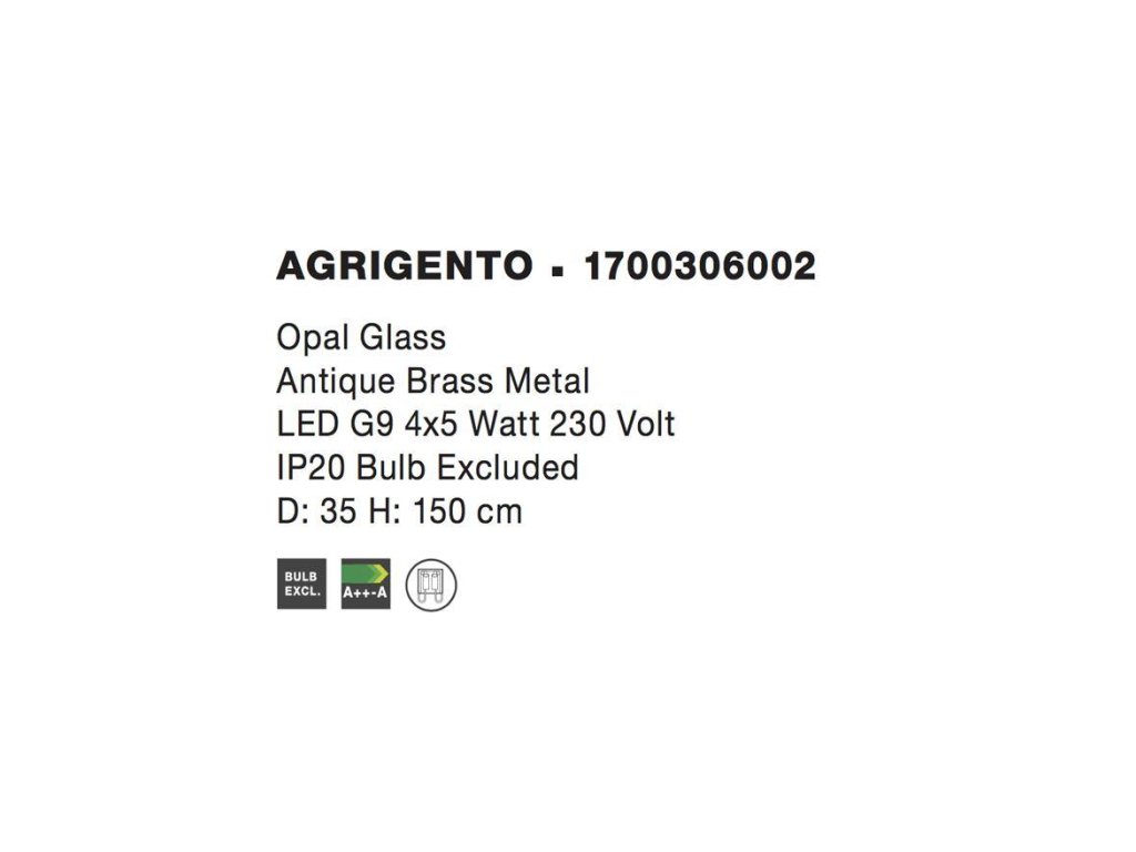 Závesné svietidlo AGRIGENTO opálové sklo antický mosadzný kov G9 4x5W