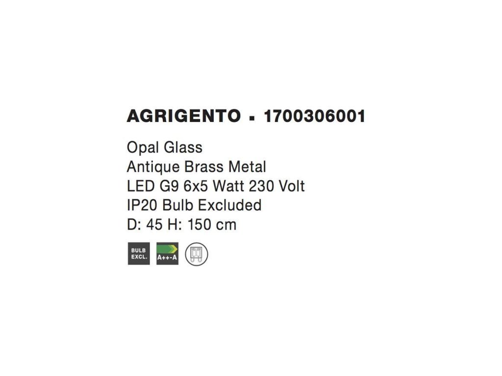 Závesné svietidlo AGRIGENTO opálové sklo antický mosadzný kov G9 6x5W