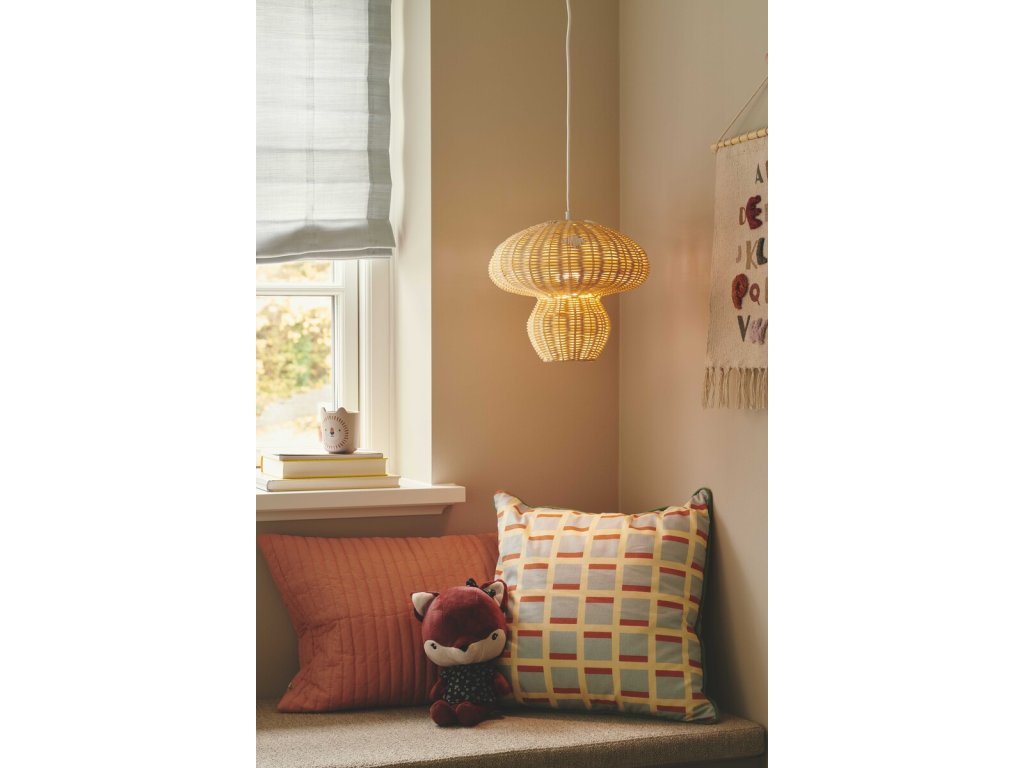 Allie je závesné svietidlo, ktoré prináša do detskej izby alebo spálne kúsok prírody. S jemným tvarom pripomínajúcim špongiu a ratanovým prevedením vytvára v miestnosti útulnú atmosféru plnú mäkkého svetla a krásnych tieňov. Ideálne pre všetkých, ktorí chcú detskej izbe, spálni alebo celkovo interiéru dodať hravý a prirodzený nádych.