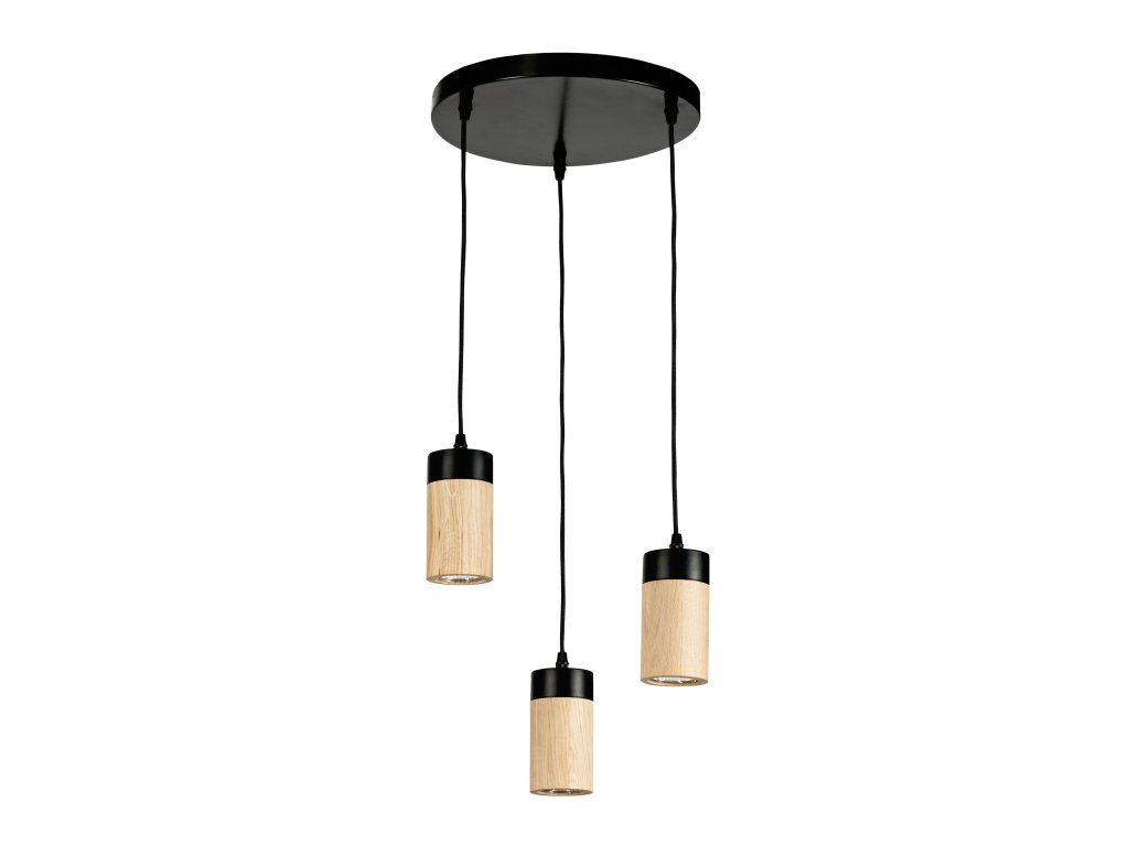 Kombinácia čierneho kovu a dubového dreva v olejovanom prevedení, s tromi svetelnými bodmi, dodáva tomuto svietidlu luxusný a nadčasový vzhľad.