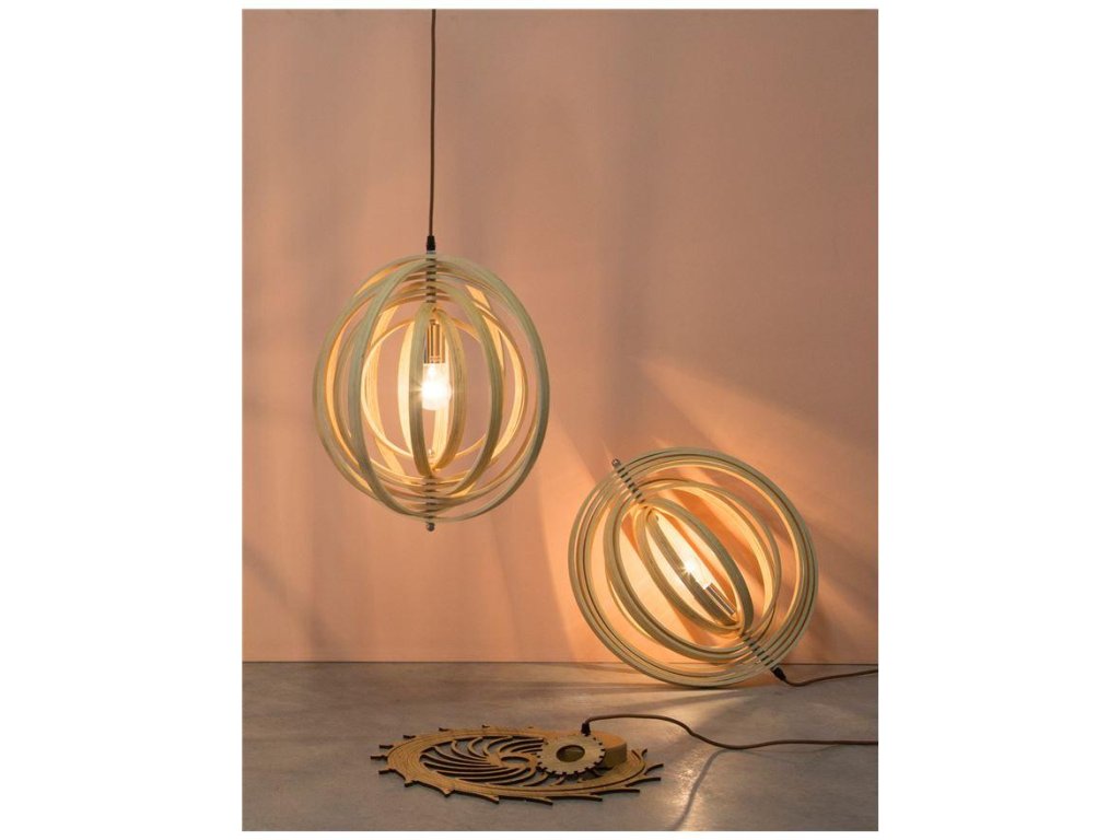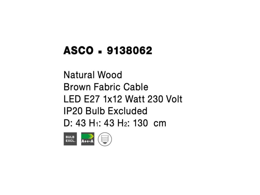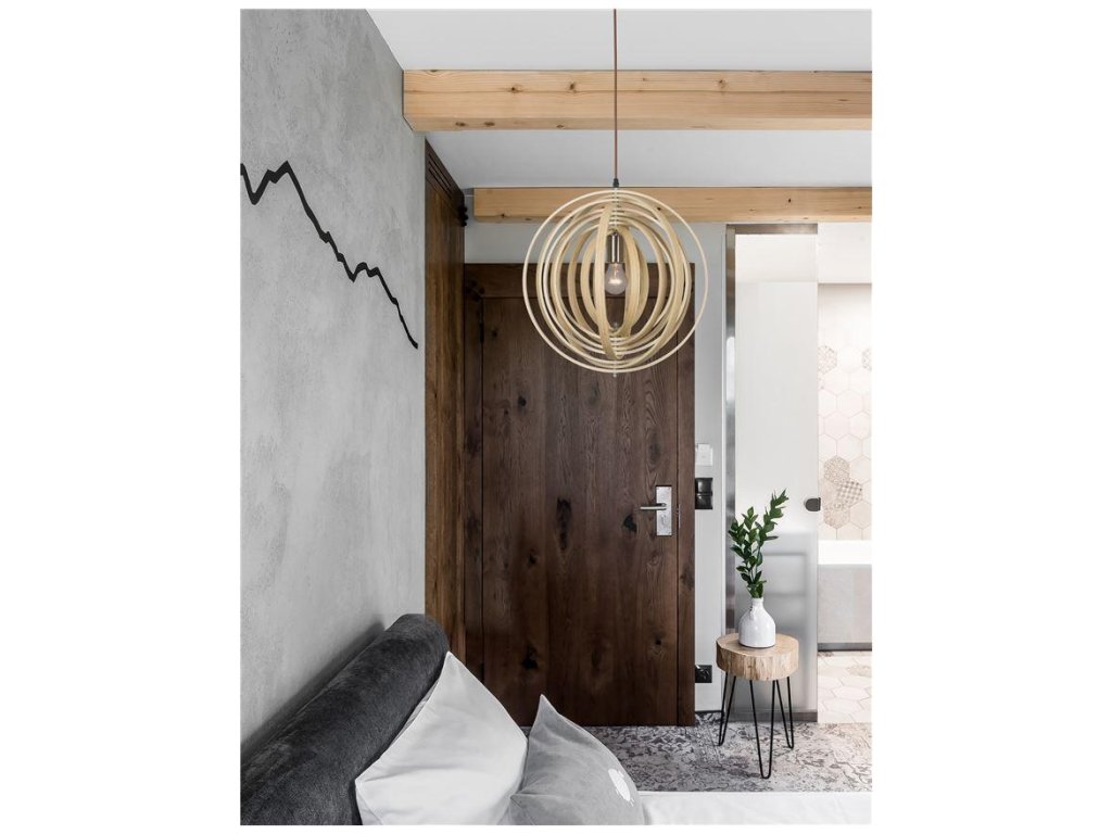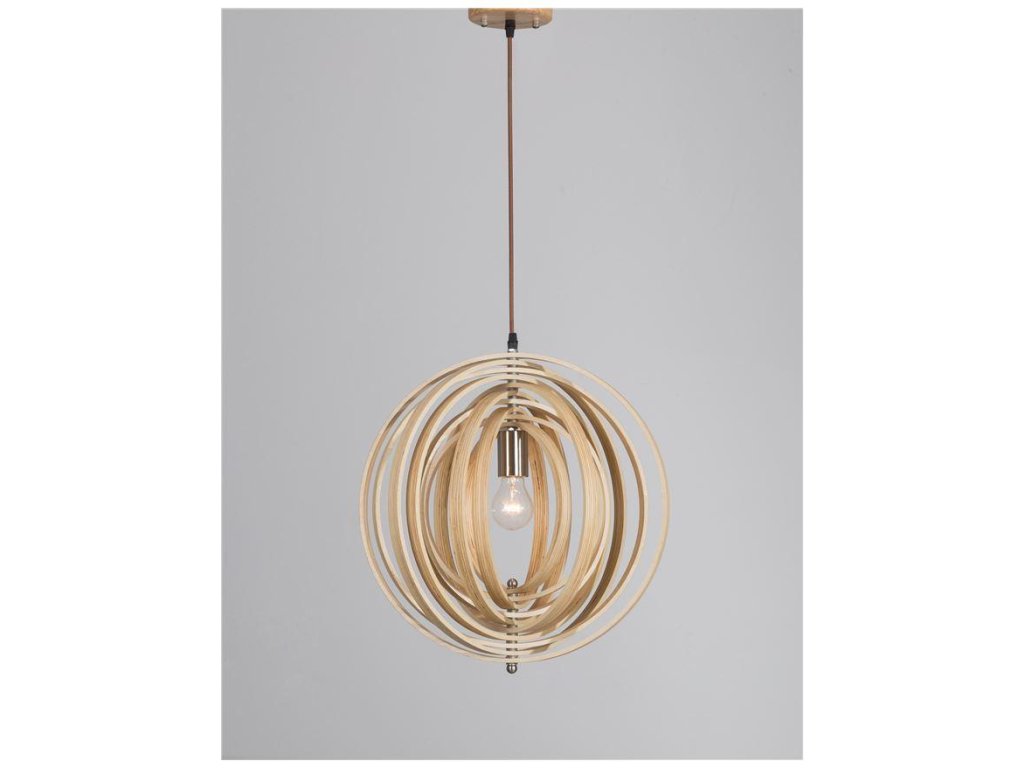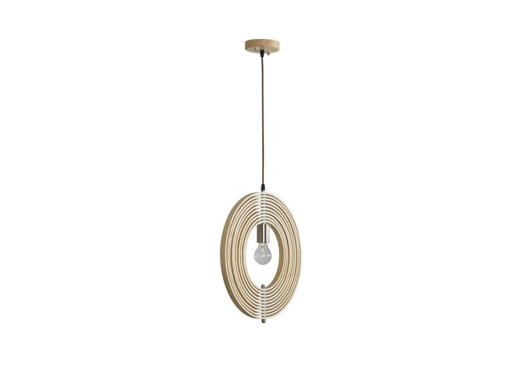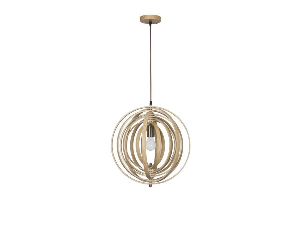 Závesné svietidlo ASCO prírodné Drevo hnedý textilný kábel E27 1x12W