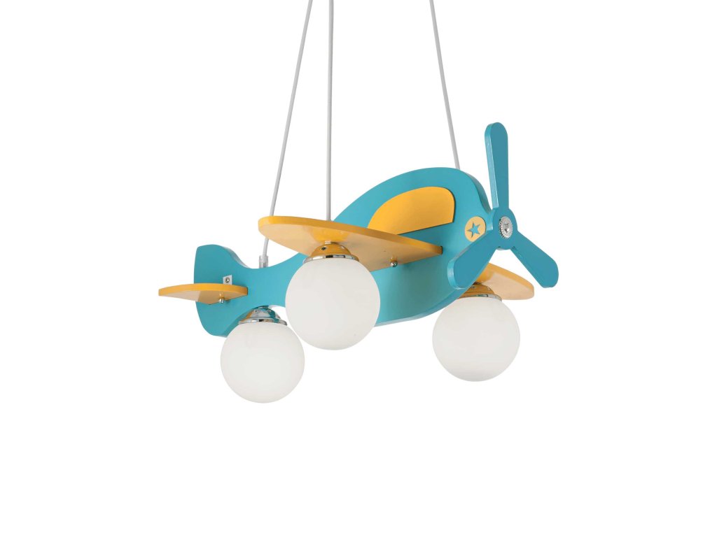 Závesný luster AVION SP3 AZZURRO s matne lakovaným azúrovým dreveným telom vnesie svetlo do každej detskej izby. Chrómované kovové detaily. Difúzory z fúkaného a kyselinou leptaného bieleho skla. Osadené päticou E14 o maximálnom príkone 3 x 40W (zdroj nie je súčasťou balenia). Krytie IP20 je určené pre vnútornú montáž.Dodatočné parametre