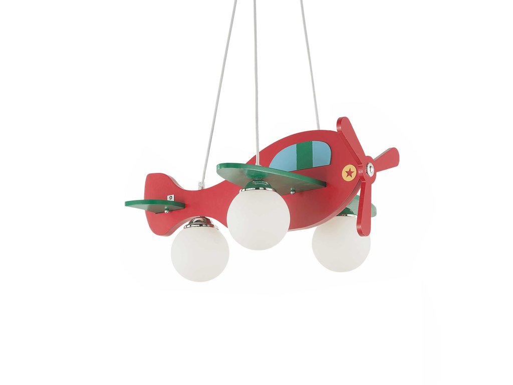 Závesný luster AVION SP3 ROSSO s matne lakovaným červeným dreveným telom vnesie svetlo do každej detskej izby. Chrómované kovové detaily. Difúzory z fúkaného a kyselinou leptaného bieleho skla. Osadené päticou E14 o maximálnom príkone 3 x 40W (zdroj nie je súčasťou balenia). Krytie IP20 je určené pre vnútornú montáž.Dodatočné parametre