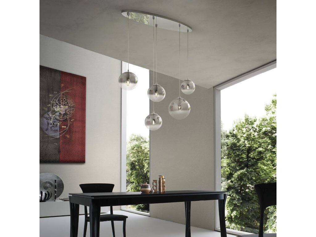 Závesná lampa Berry z kolekcie interiérového osvetlenia REDO skvele vynikne v štýlovom interiéri. Kovová konštrukcia vo farbe saténovo zlatá alebo dymová.Dodatočné parametre