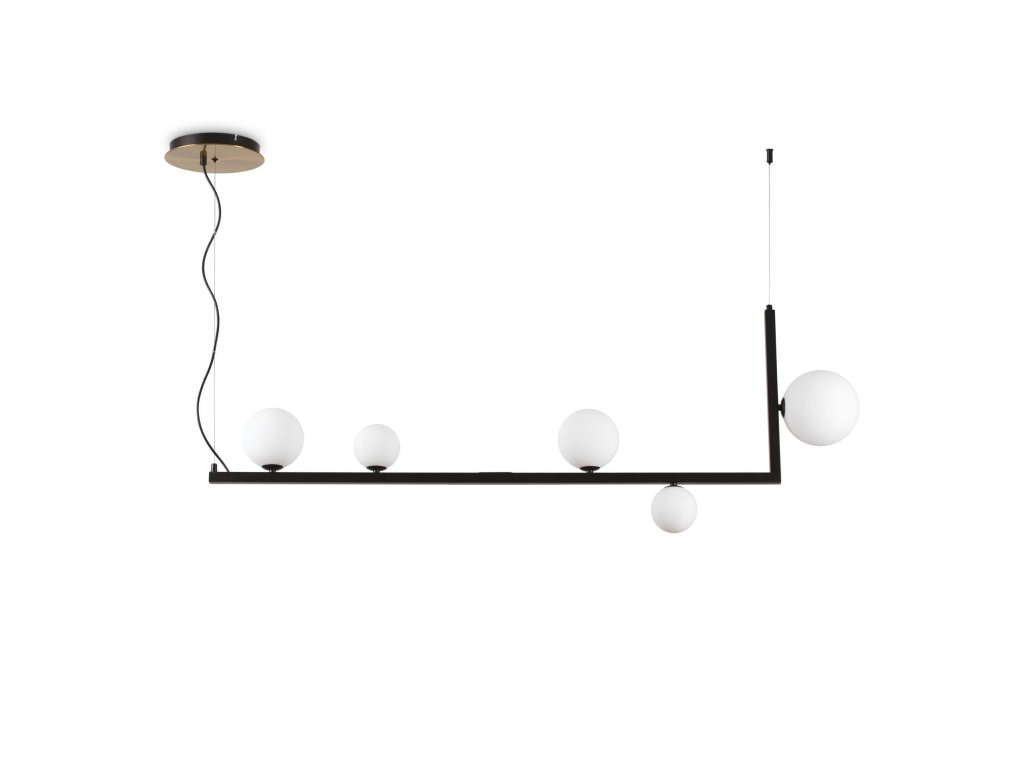Luster Birds sa hodí ako štýlové osvetlenie nad jedálenský stôl či ako dizajnový doplnok do pracovne. Päť okrúhlych sklenených difúzorov z mliečneho skla sú nepravidelne rozmiestnené na čiernej kovovej konštrukcii a vytvárajú tak zaujímavý dojem, ktorý pripomína vtáčiky na bidielku. Stropné ružice lustra je v decentnom zlate mosadznom prevedení. Konštrukcia lustra je na konci predĺženého ramena uchytená k stropu za pomoci tenkého lanka.Dodatočné parametre