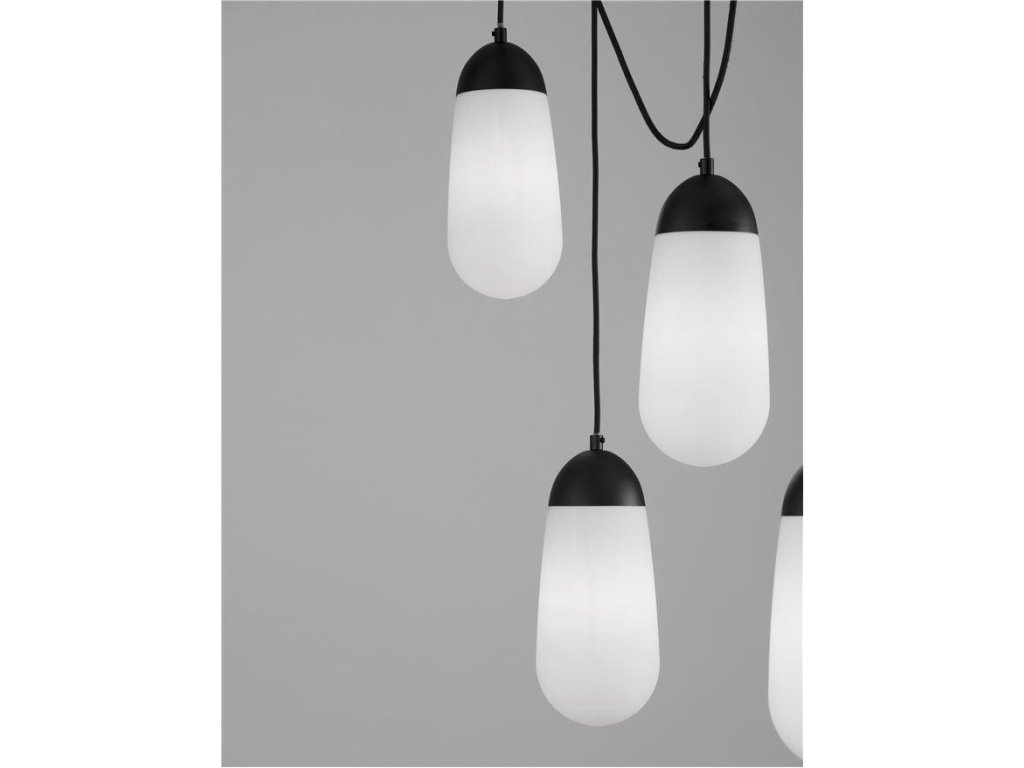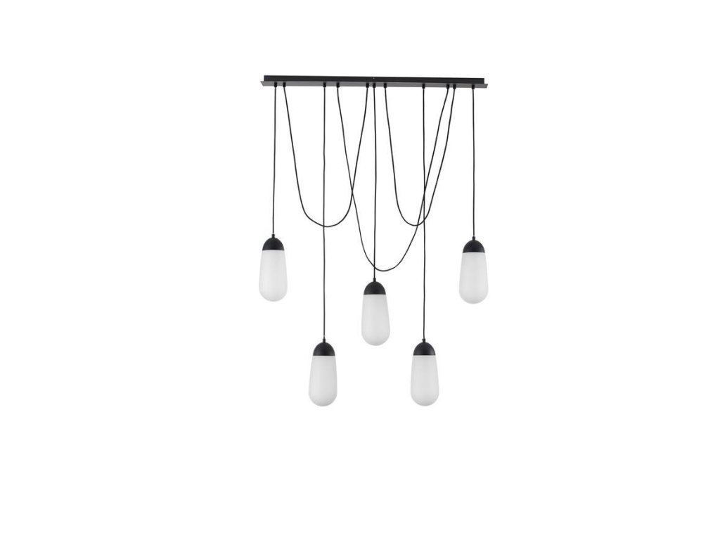 Závesné svietidlo BLAKY matný čierny kov a opálové sklo E14 5x5W