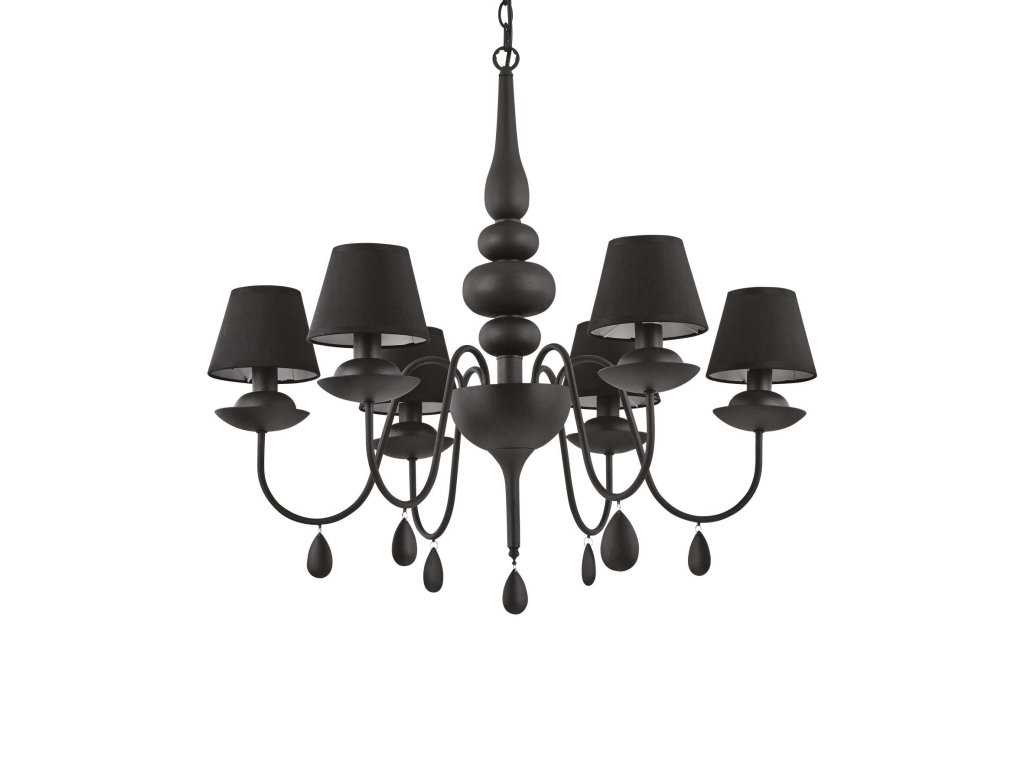 Klasický šesťramenný luster BLANCHE SP6 v čiernom prevedení v zámockom štýle s textilnými tienidlami. Určené na použitie so šiestimi žiarovkami E14 max 6x40W bez žiaroviek. Balenie bez žiaroviekDodatočné parametre