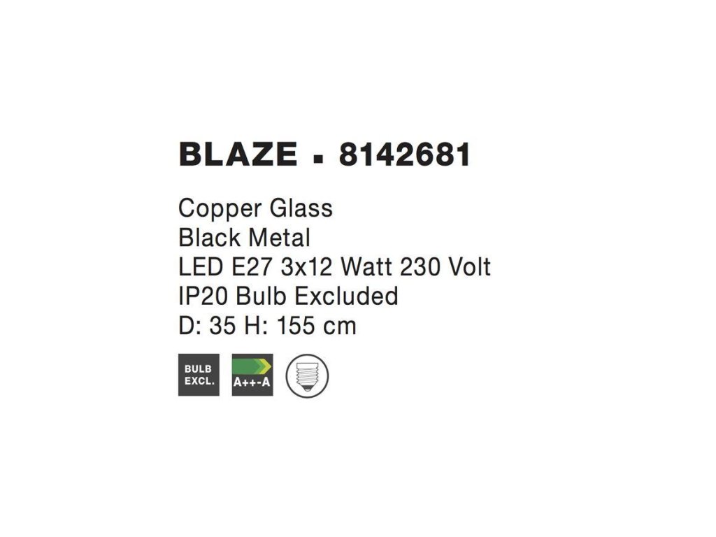 Závesné svietidlo BLAZE medené sklo a čierny kov E27 3x12W