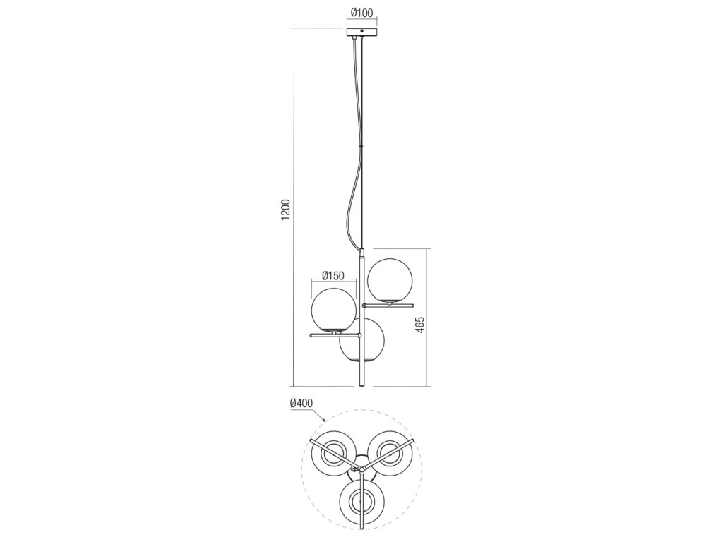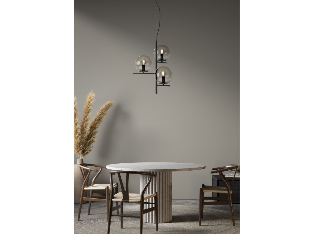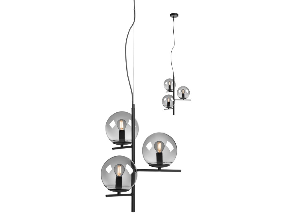 Závesné svietidlo do interiéru, kovová konštrukcia pieskovo čierna, dymovo fúkané sklenené difúzory.