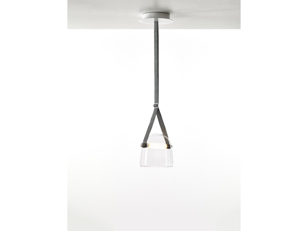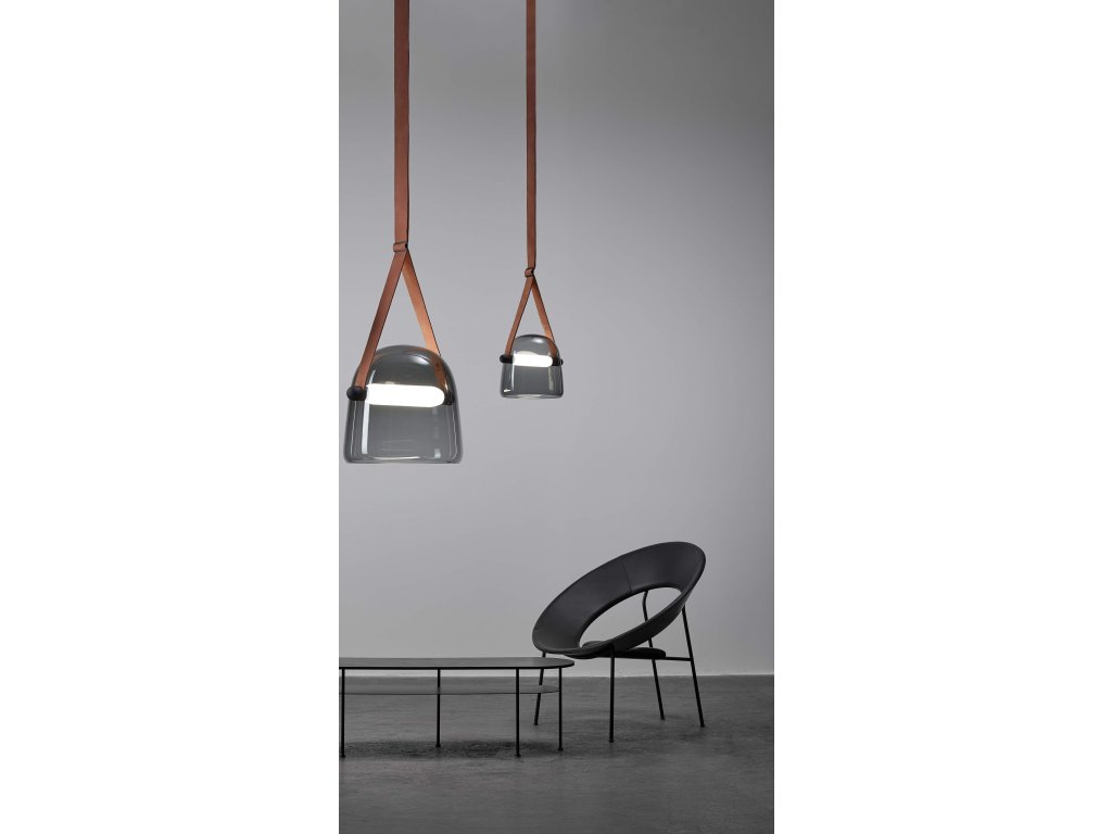 Materiál: ručne fúkané sklo, farbené v hmote a kov