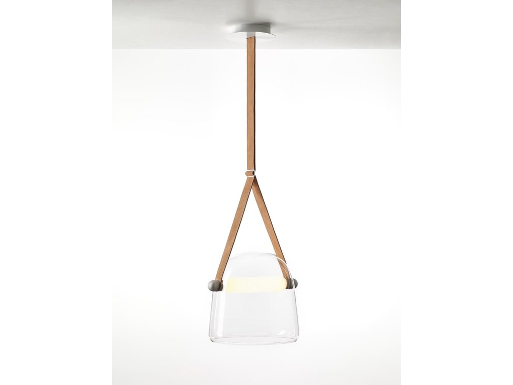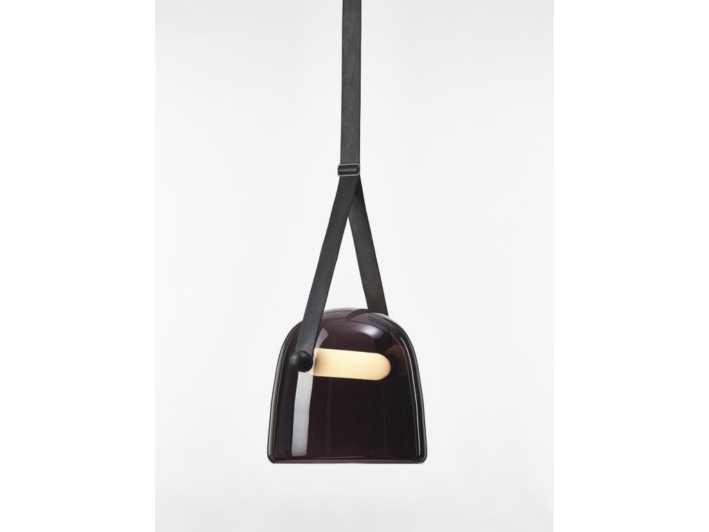Materiál: ručne fúkané sklo, farbené v hmote a kov