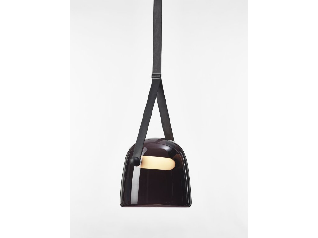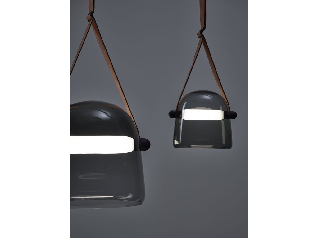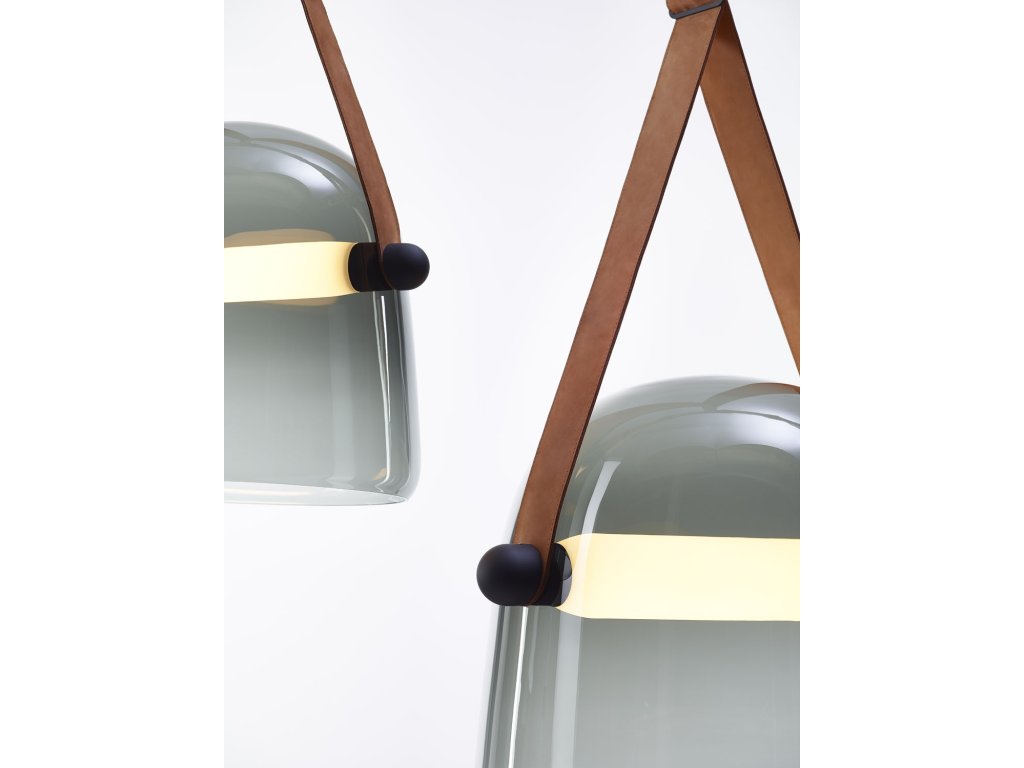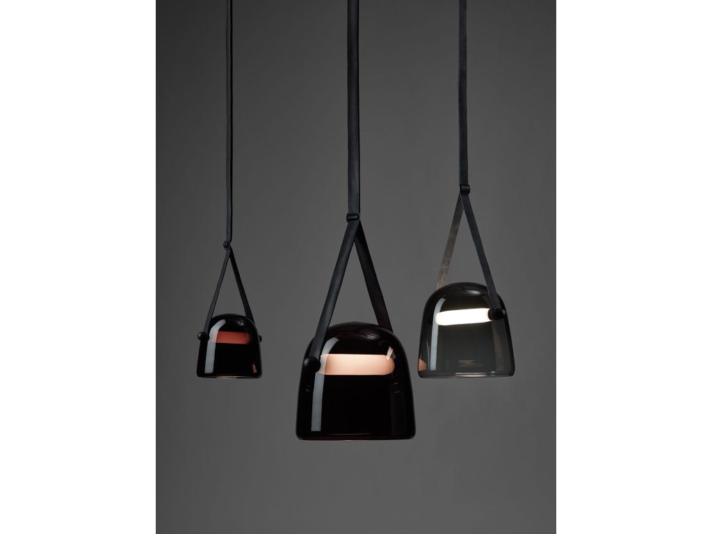 Materiál: ručne fúkané sklo, farbené v hmote a kov