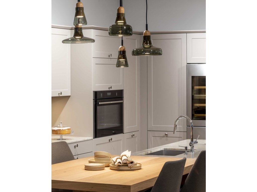 Materiál produktu: Ručne fúkané sklo, Kov, Drevo