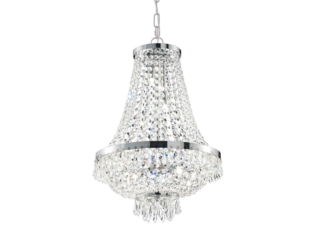 Klasický dvanásťramenný krištáľový luster CAESAR v Talianskom štýle v chrómovom prevedení s krištáľovými ozdobami. Možno použiť dvanásť žiaroviek so závitom G9 o max. príkone 12x40W.Dodatočné parametre