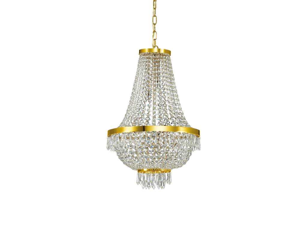 Klasický deväťamenný krištáľový luster CAESAR v Talianskom štýle v zlatom prevedení s krištáľovými ozdobami. Je možné použiť deväť žiaroviek so závitom G9 o max. príkonu 9x40W. Žiarovky sú súčasťou balenia.Dodatočné parametre