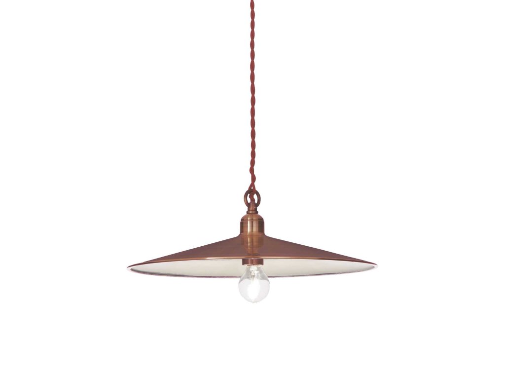 Medené závesné retro svietidlo Cantina SP1 Rame z kolekcie dekoratívneho osvetlenia značky Ideal Lux. Povrchová úprava svietidla je medená, materiál kov/textil. S päticou pre žiarovku E14 o maximálnom povolenom príkone 1x40W. Krytie svietidla je IP20. Žiarovka môže byť klasická, je možné nahradiť LED. Svietidlo je výrobcom dodávané bez svetelného zdroja.Dodatočné parametre