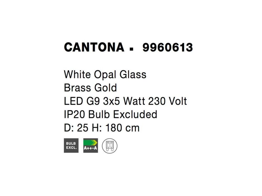 Závesné svietidlo CANTONA je k dispozícii v zlatej farbe. Svietidlo je vyrobené z mosadze a skla. Rozmery svietidla sú 29,5x180 cm. Výška tienidla z mliečneho skla je 35 cm. Svietidlo odporúčame do obývacej izby, spálne alebo jedálne. Žiarovky E27 nie sú súčasťou balenia.Dodatočné parametre