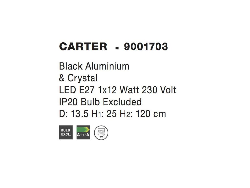 Závesné svietidlo CARTER čierny hliník a krištáľ E27 1x12W