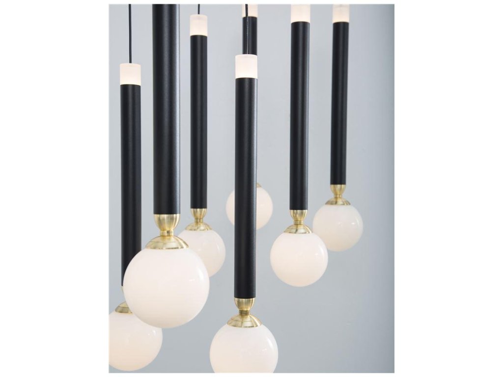 Závesné svietidlo CAYO opálové sklo a akryl mosadz a čierny hliník LED 50W 3000K