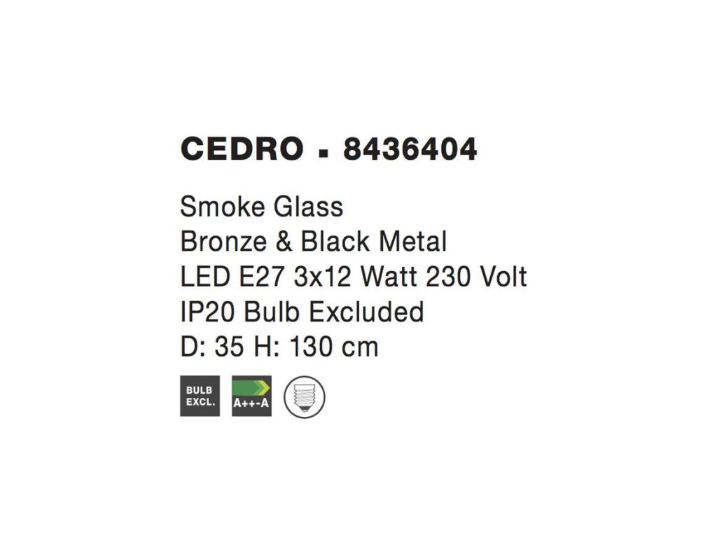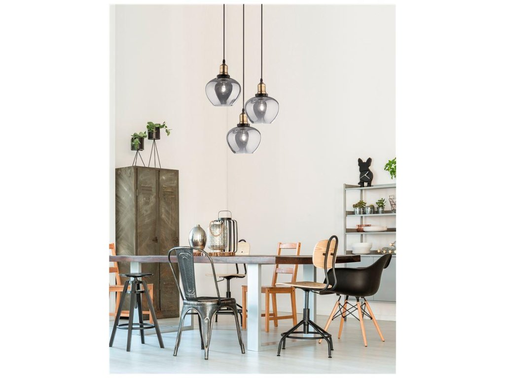 Závesné svietidlo CEDRO dymové sklo Bronz a čierny kov E27 3x12W