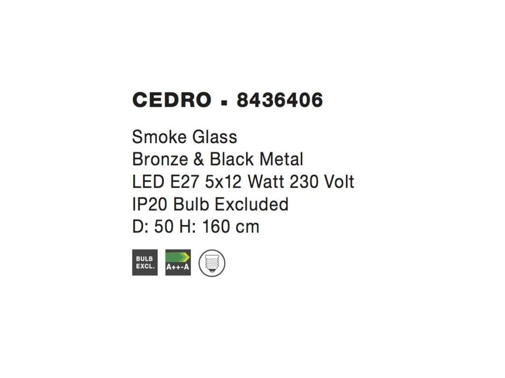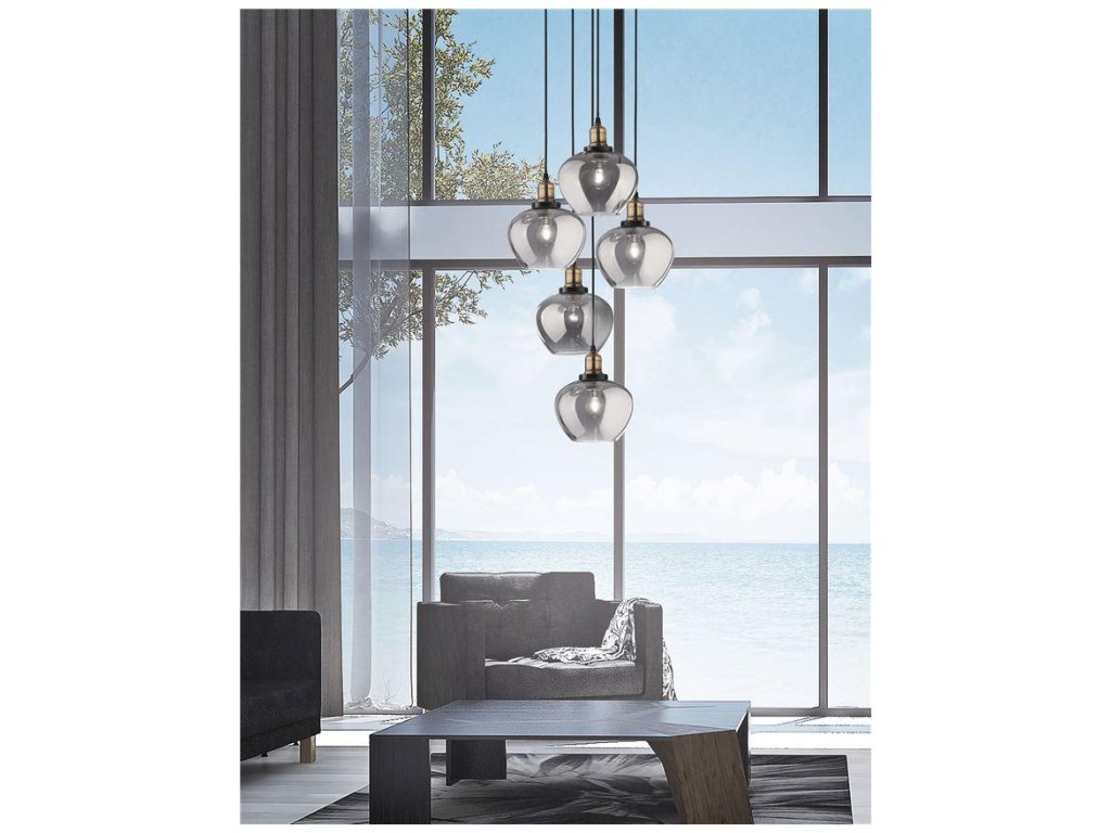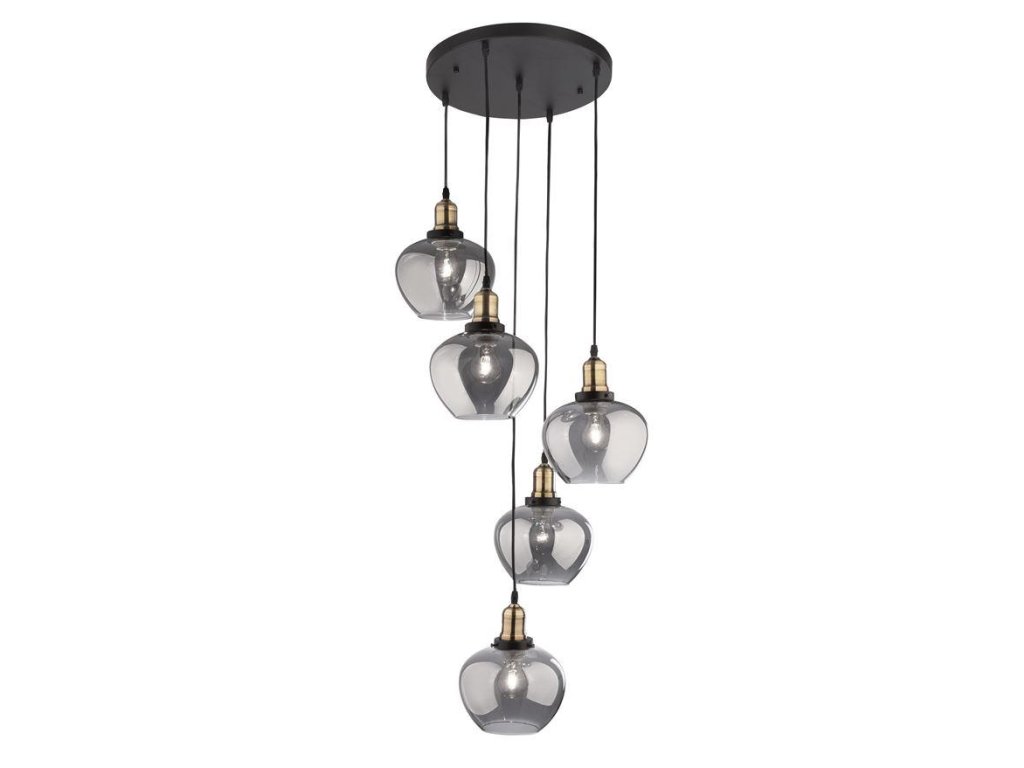 Závesné svietidlo CEDRO dymové sklo Bronz a čierny kov E27 5x12W