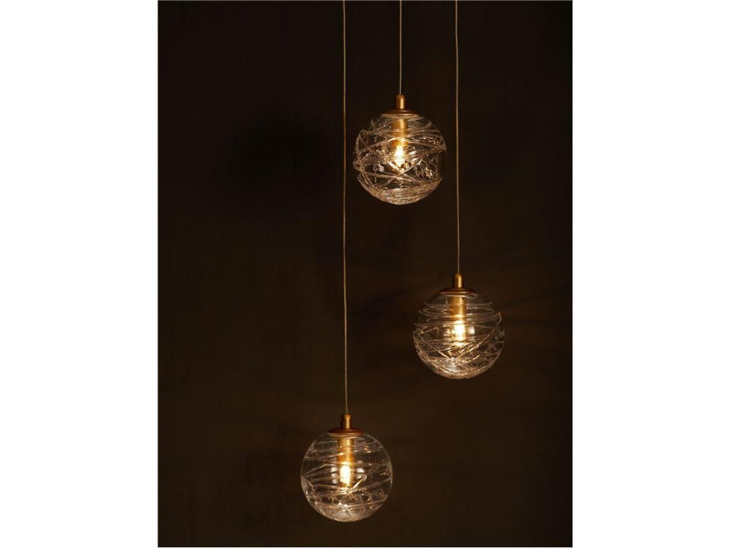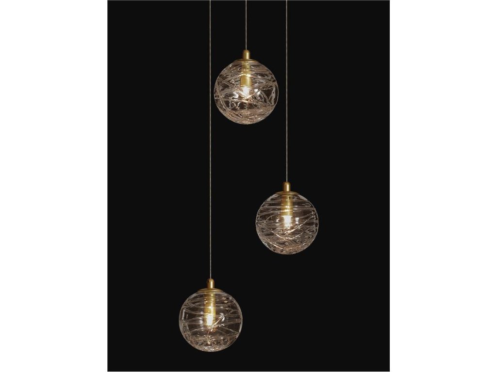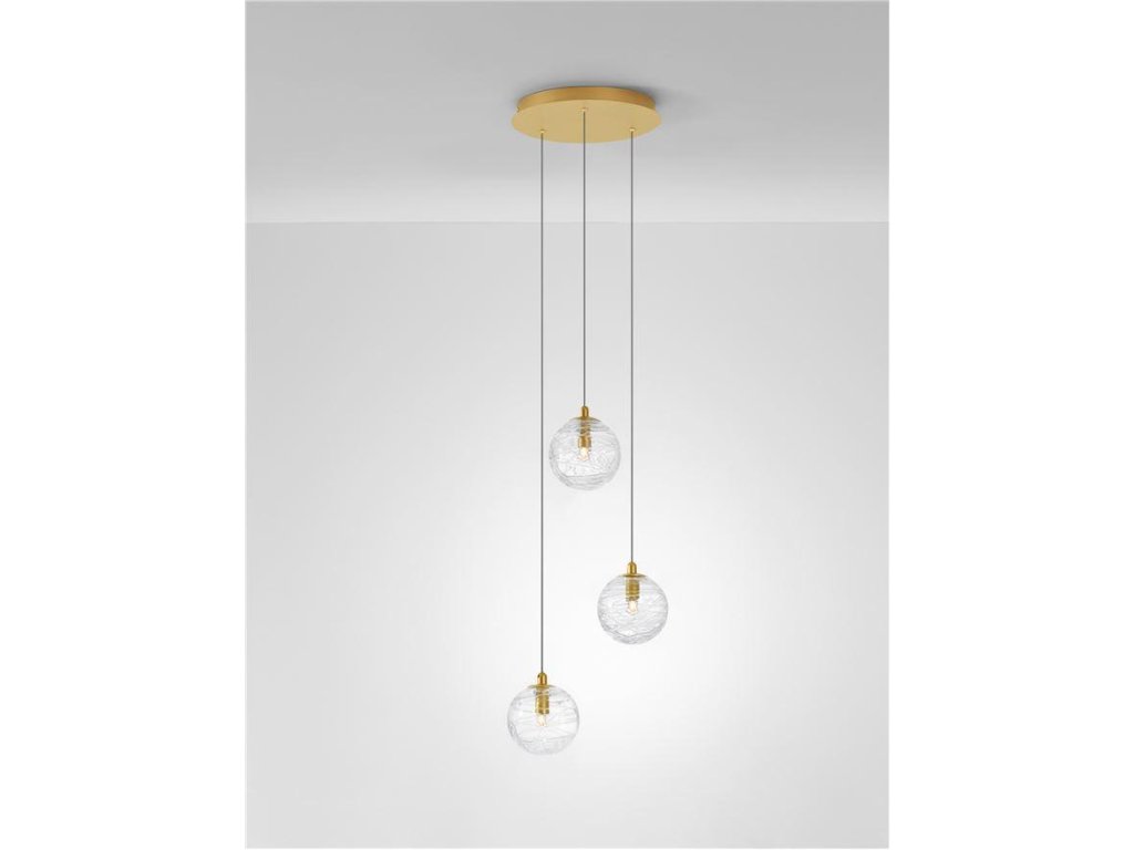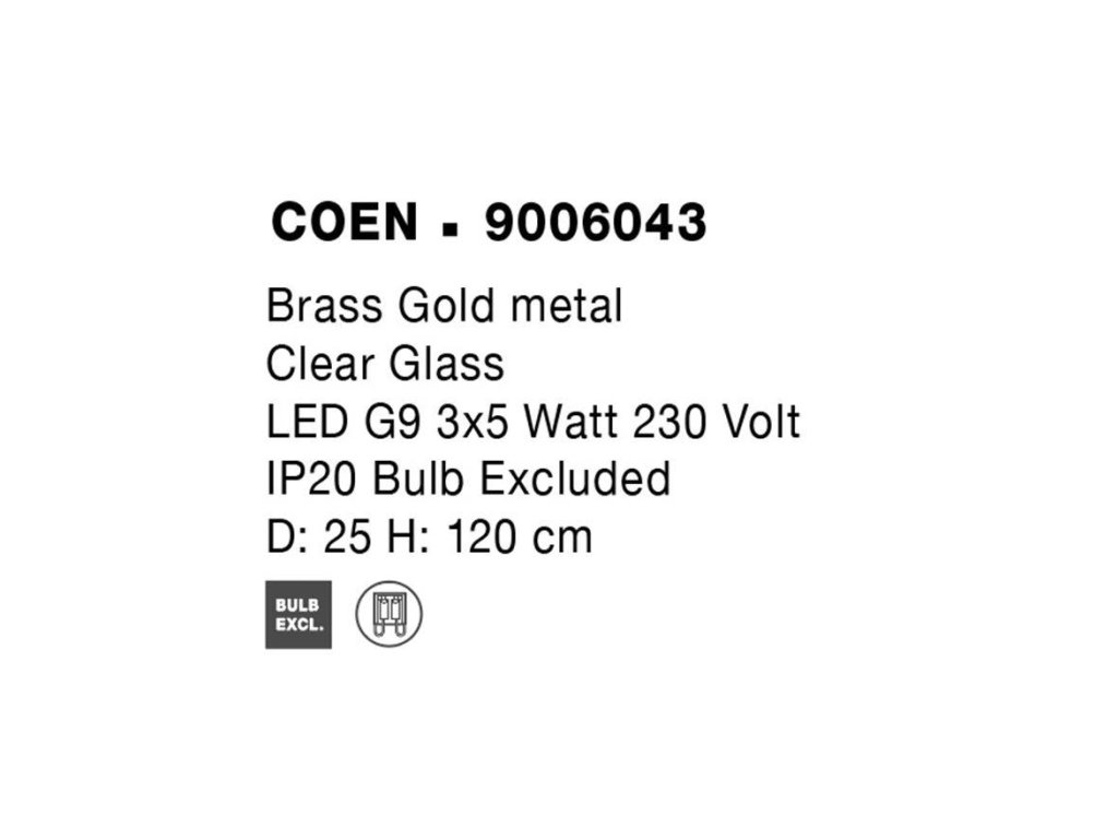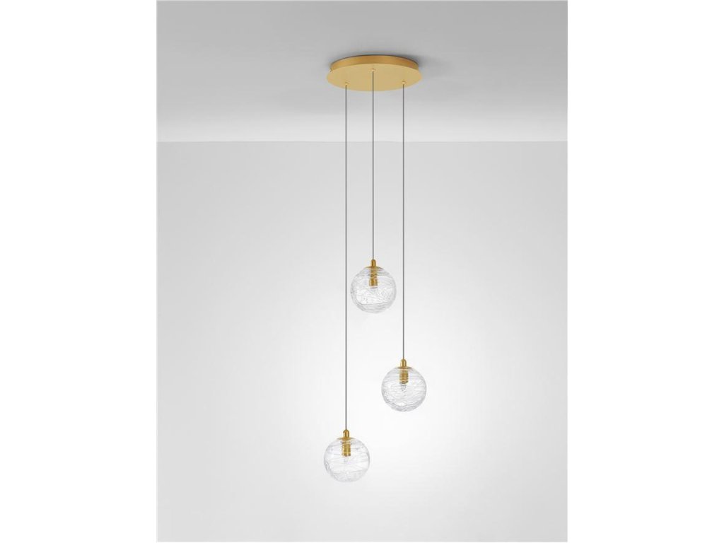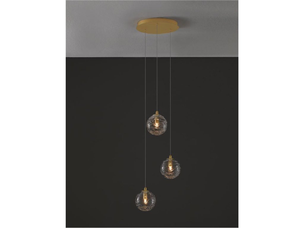 Závesné svietidlo COEN je k dispozícii v zlatej farbe so sklenenými tienidlami. Svietidlo je vyrobené z kovu a skla.Dodatočné parametre