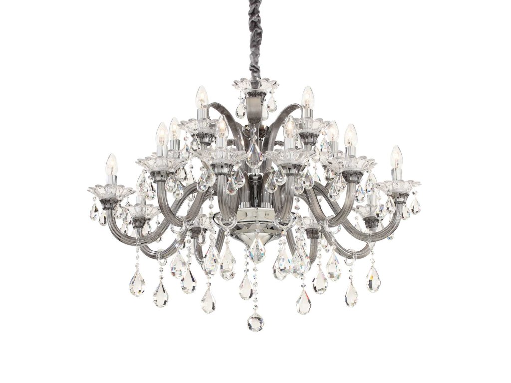 Luxusný pätnásťramenný krištáľový luster COLOSSAL v Talianskom štýle v šedom prevedení s krištáľovými ozdobami. Je možné použiť pätnásť žiaroviek so závitom E14 o max. príkonu 15x40W. Žiarovky nie sú súčasťou balenia.Dodatočné parametre