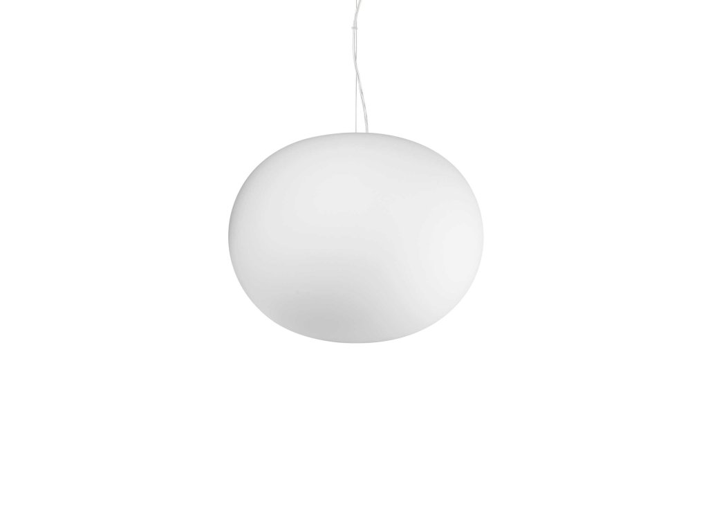 Kovová základňa s povrchovou úpravou bielym práškovým lakom. Biely difúzor z fúkaného skla leptaného kyselinou so skrutkovým upevnením.