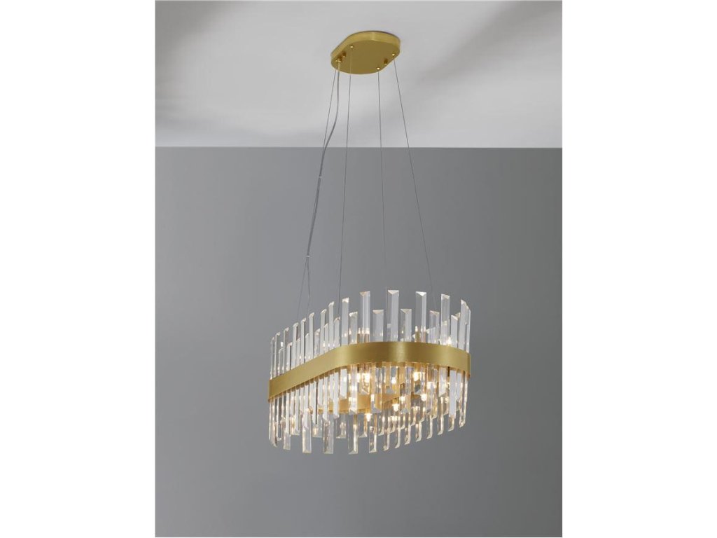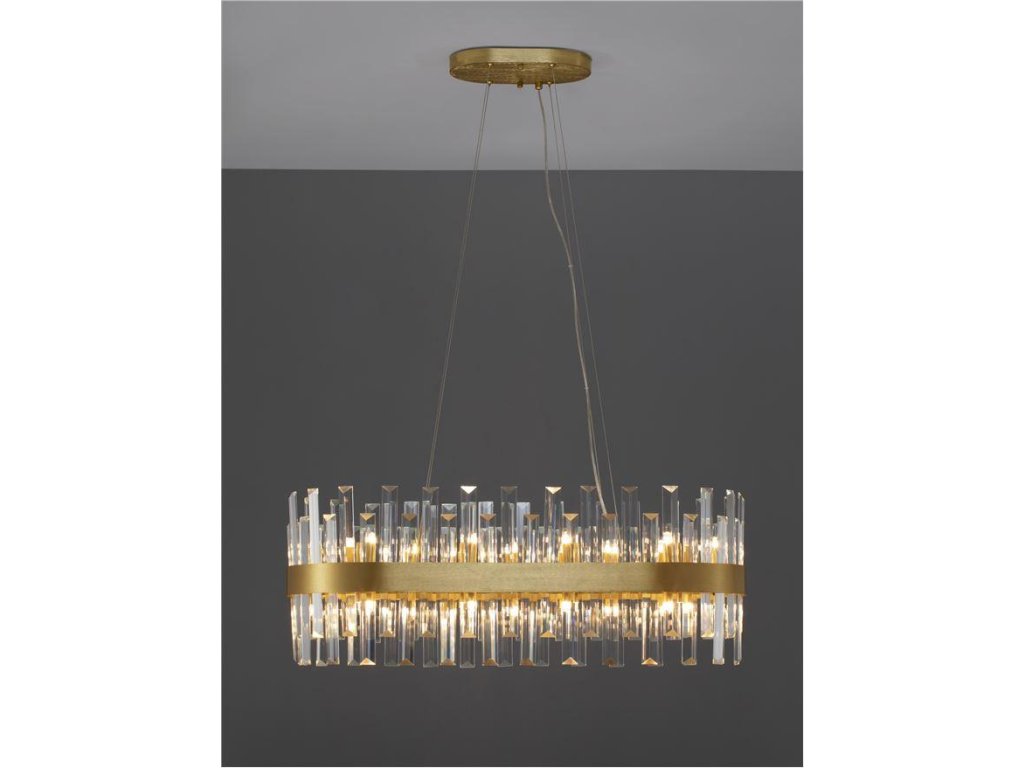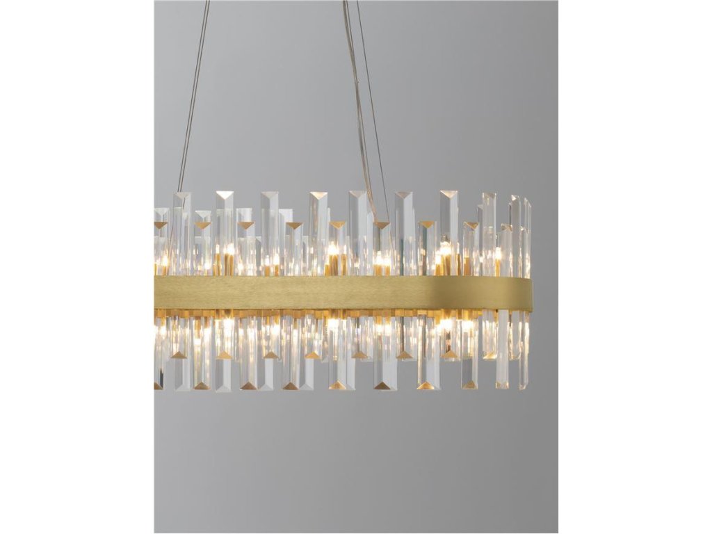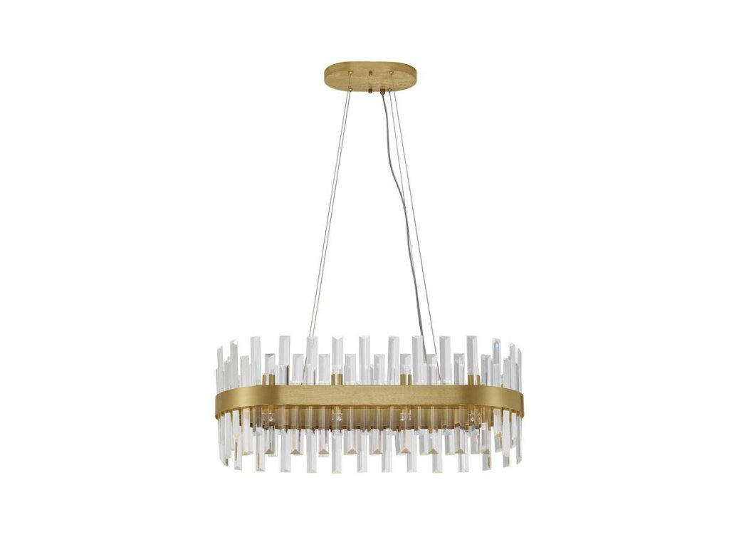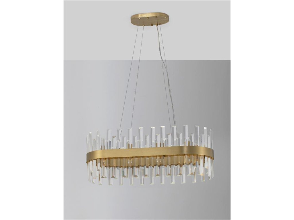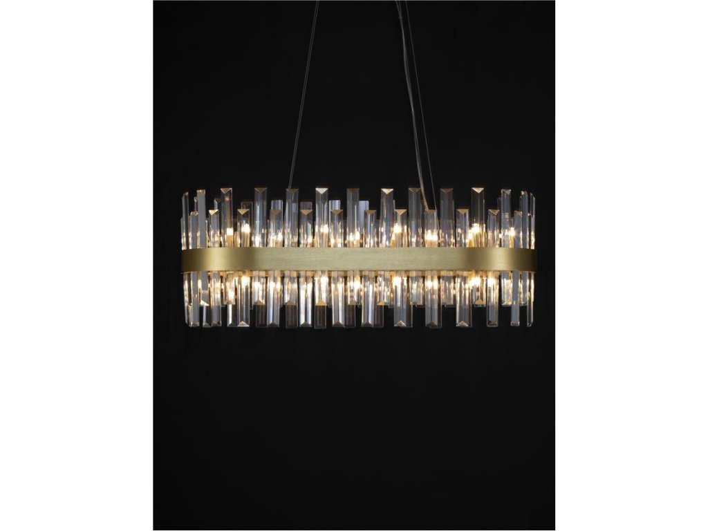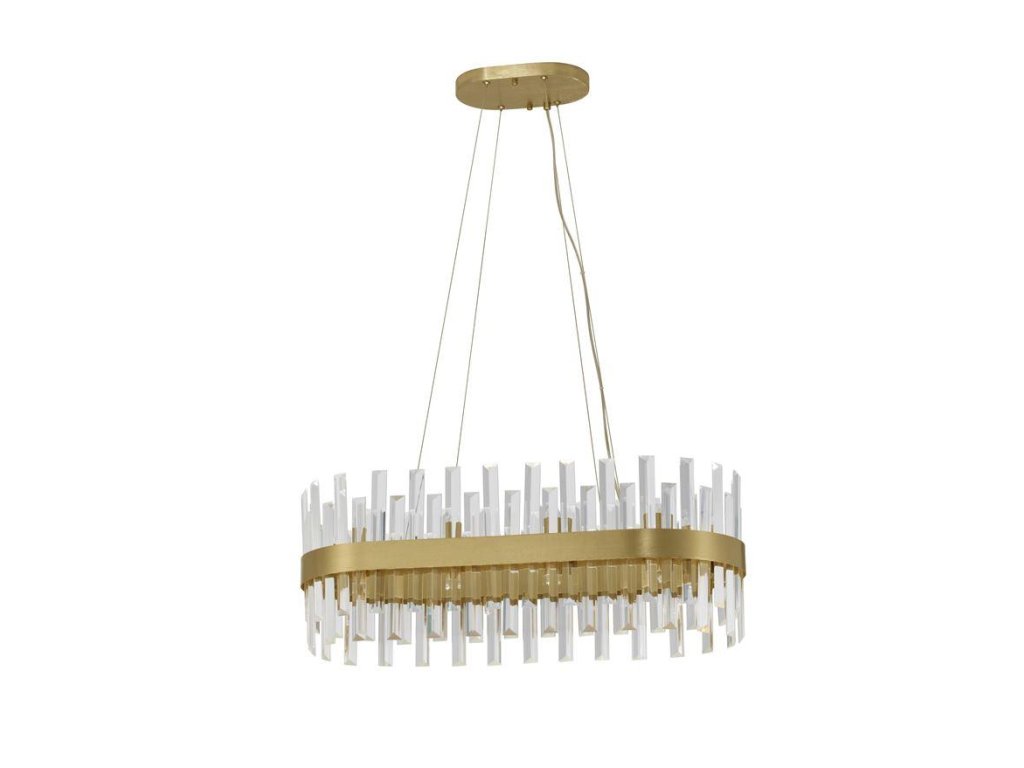 Závesné svietidlo CROWN saténový zlatý kov a číry krištáľ ovál 80cm