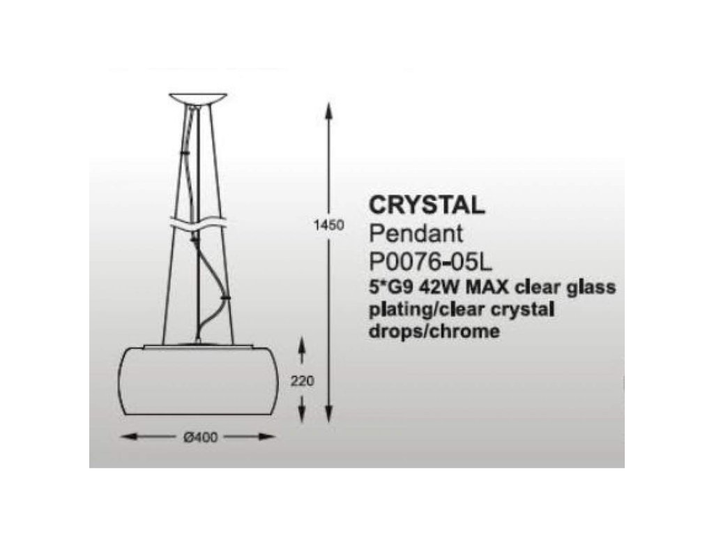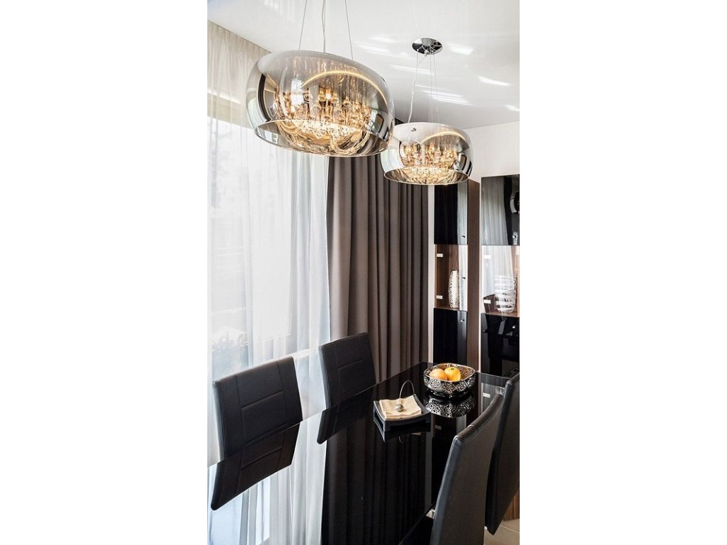 - vďaka využitiu troch moderných materiálov - kovu, skla a krištáľu je svietidlo vhodné pre využitie v moderných interiéroch