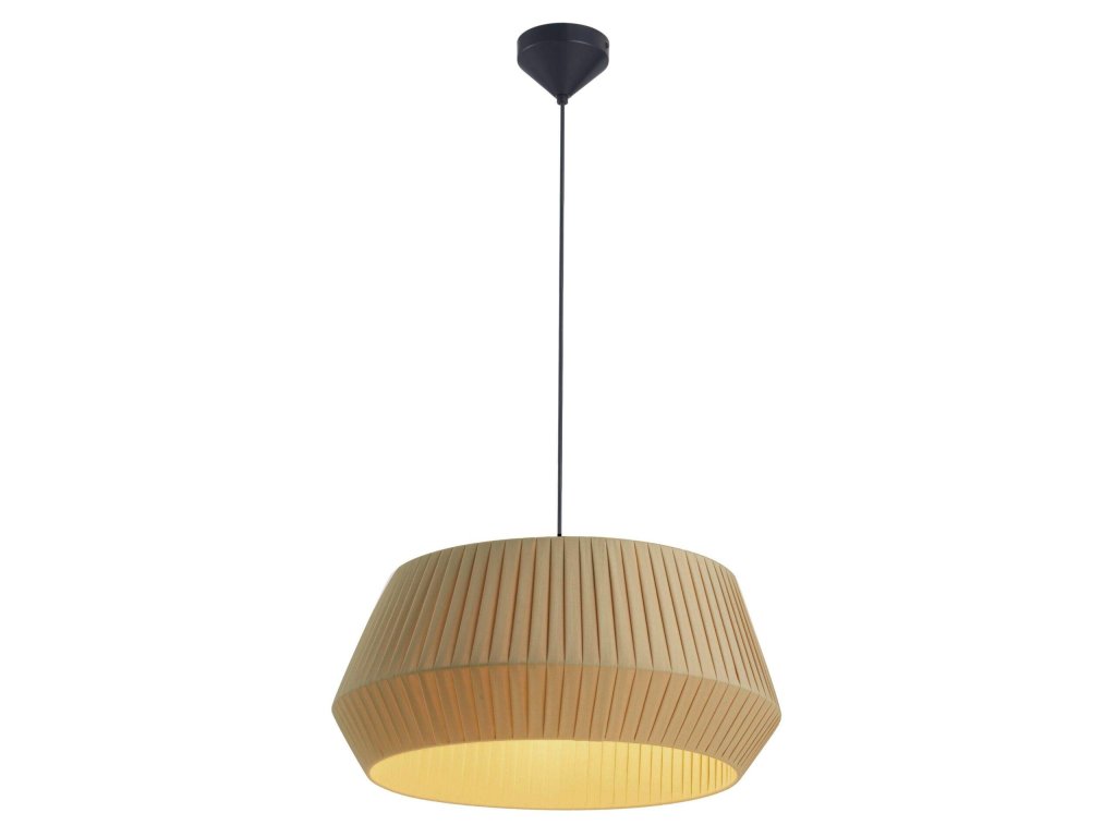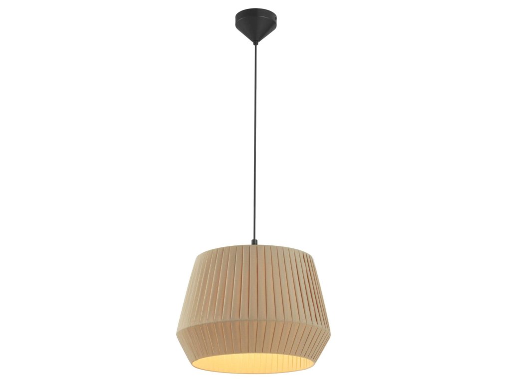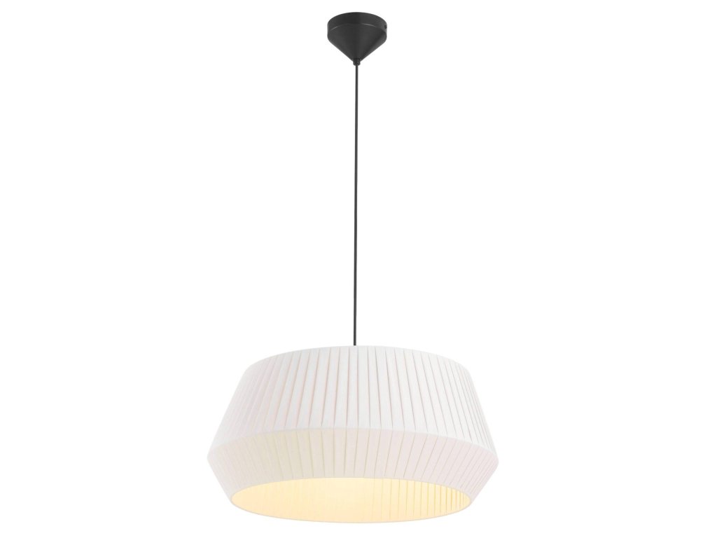 Plisované bavlnené tienidlo, ktoré je uchytené na kovovej čiernej základni, zaisťuje mäkké a rozptýlené svetlo, ktoré je ideálne na osvetlenie vášho jedálenského stola. Svietidlo je dostupné v dvoch farebných prevedeniach - biela a béžová.