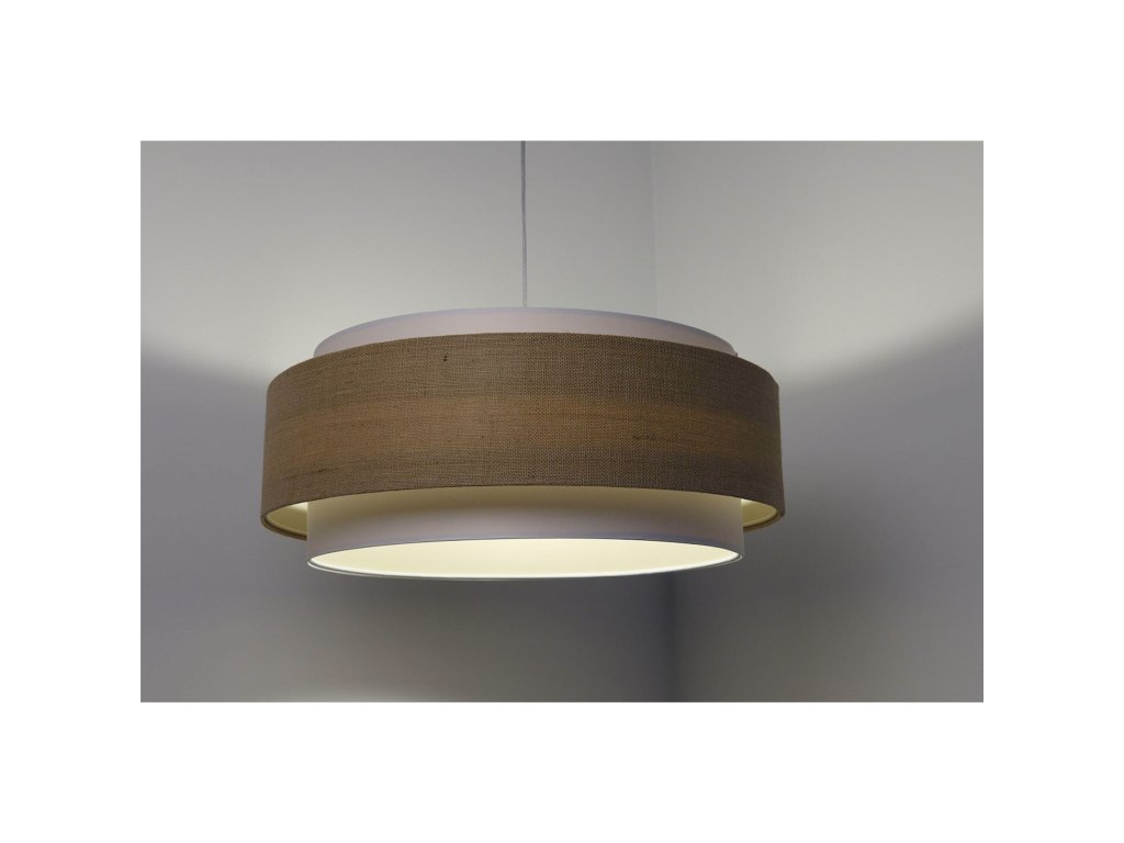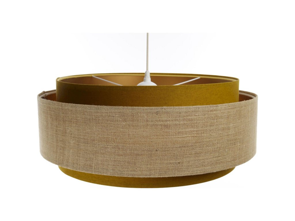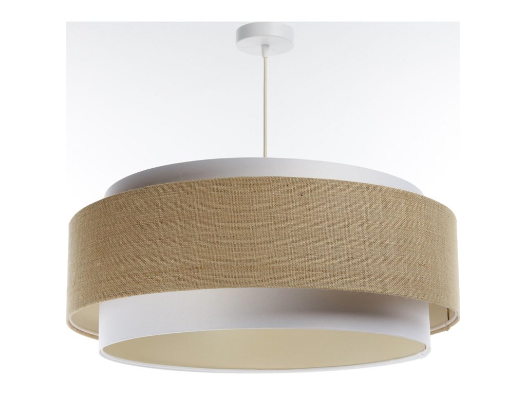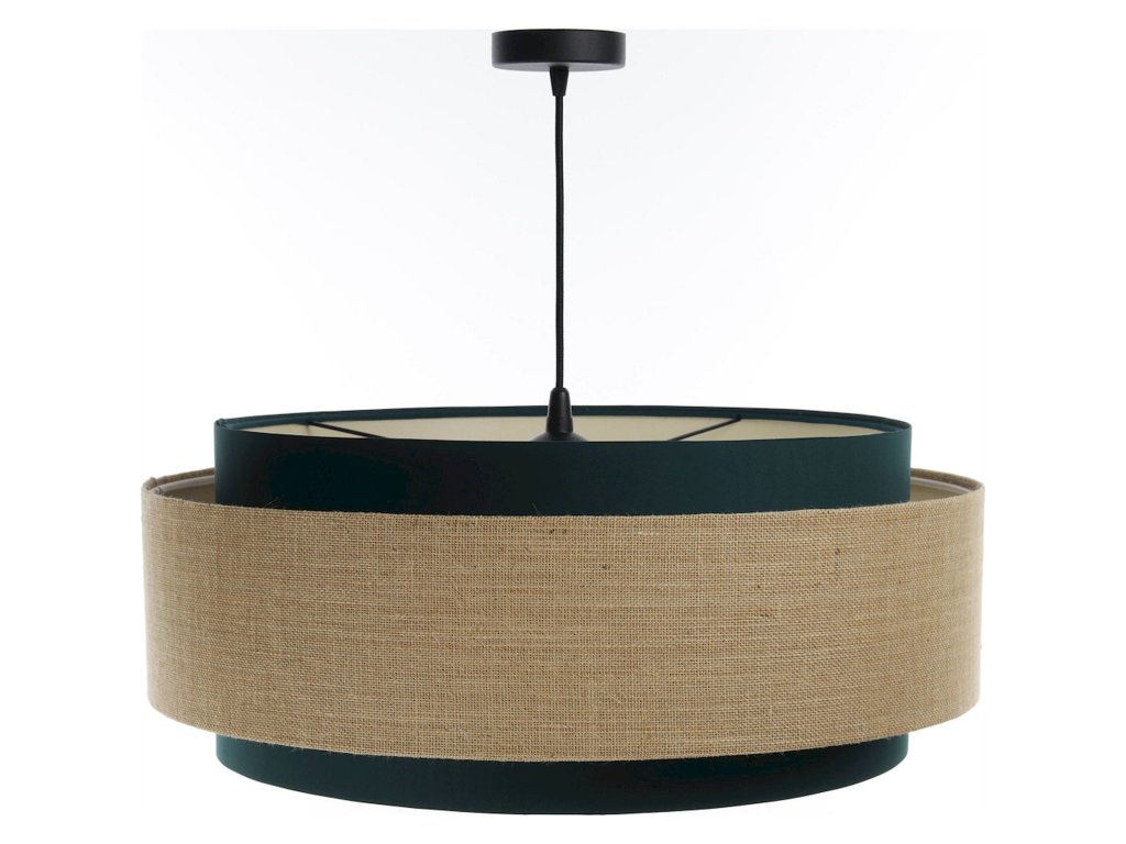BPS KonceptZávesné svietidlo DOBLO jutové v kombinácii so štyrmi farebnými variantmi - čierna, biela, zlatá a zelená. Tienidlo je odolné voči UV žiareniu, takže tkanina počas používania nevybledne. Priemer svietidla je 60 cm. Skvele sa hodí do obývacej izby či spálne.
