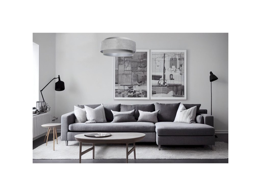 Závesné svietidlo DOBLO v šedej farbe. Tienidlo je odolné voči UV žiareniu, takže tkanina počas používania nevybledne. Priemer svietidla je 60 cm. Skvele sa hodí do obývacej izby či spálne.