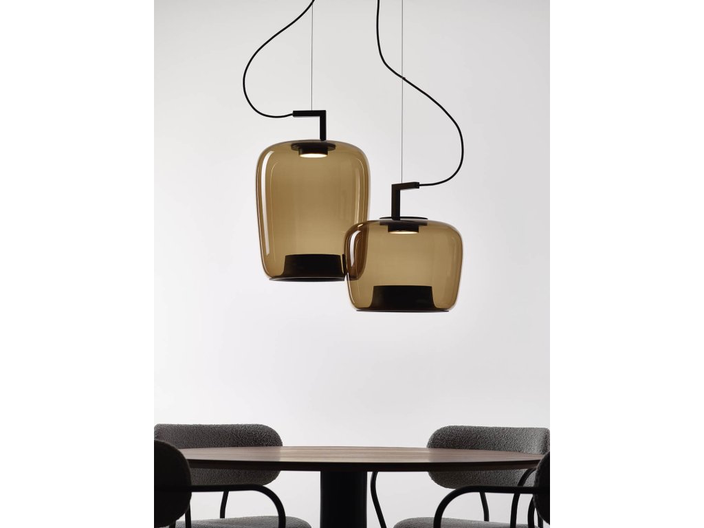Séria svietidiel Double, je tvorená z dvoch prvkov a dvoch rôznych materiálov, ako je kova sklo. Tieto prvky na sebe závisia, tak aby vytvorili jedinečný a harmonický tvar. Prostredníctvom skleneného tvaru zakončeného kovovou časťou vytvára svetlo zaujímavé efekty. Pri závesnej verzii svetla horná kovová časť s lankom vyvažuje a hľadá rovnováhu pre svetlo a jeho tieň. Svetelný LED zdroj, vrhá jemnú žiaru cez difúzor, sklenenú časť svetla a kovovú časť z ľahkého hliníka, ktorá mení rozptyl svetla a jeho tieň. Sklenené tienidlo je utvorené v niekoľkých vrstvách sklovín, pričom každé z nich venujú vyfúknutím do formy sklárski majstri mimoriadnu pozornosť. Kolekcia Double je svojim rozsahom ideálna do súkromných interiérov a veľmi dobre funguje vo veľkých kompozíciách a farebných variáciách. Nová kolekcia bola rozšírená o stolné a podlahové varianty. Povrch montúry aj baldachýnu je z čierneho matného komaxitu so štruktúrou.