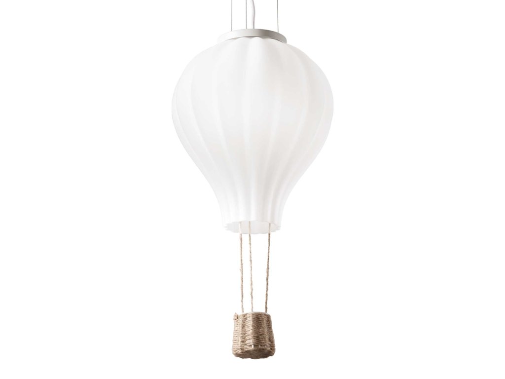 Závesné svietidlo DREAM BIG z kolekcie designového osvetlenia značky Ideal Lux sa stane skvelým doplnkom každého detského kráľovstva. Vzhľad svietidla pripomína teplovzdušný balón, ktorého súčasťou je samozrejme prútený kôš. Okrúhla základňa s priemerom 11 cm je zhotovená z kovu s lakovanou povrchovou úpravou v bielej farbe. Prívodný kábel je pokrytý bielou tkaninou a jeho výšku je možné nastaviť od 100 cm do 265 cm. Ohromné tvarované tienidlo z bieleho leptaného skla s priemerom 42 cm je osadené päticou E27 pre žiarovku s maximálnym príkonom 1 x 42 W (zdroj nie je súčasťou balenia). Dodávateľ odporúča zakúpiť LED žiarovku. Vzhľadom na nízke krytie IP20 nie je svietidlo vhodné do miestností s výskytom vyššej vlhkosti vzduchu. Je napájané zo siete na 220-240V a vzťahuje sa naň záruka 3 roky.Dodatočné parametre