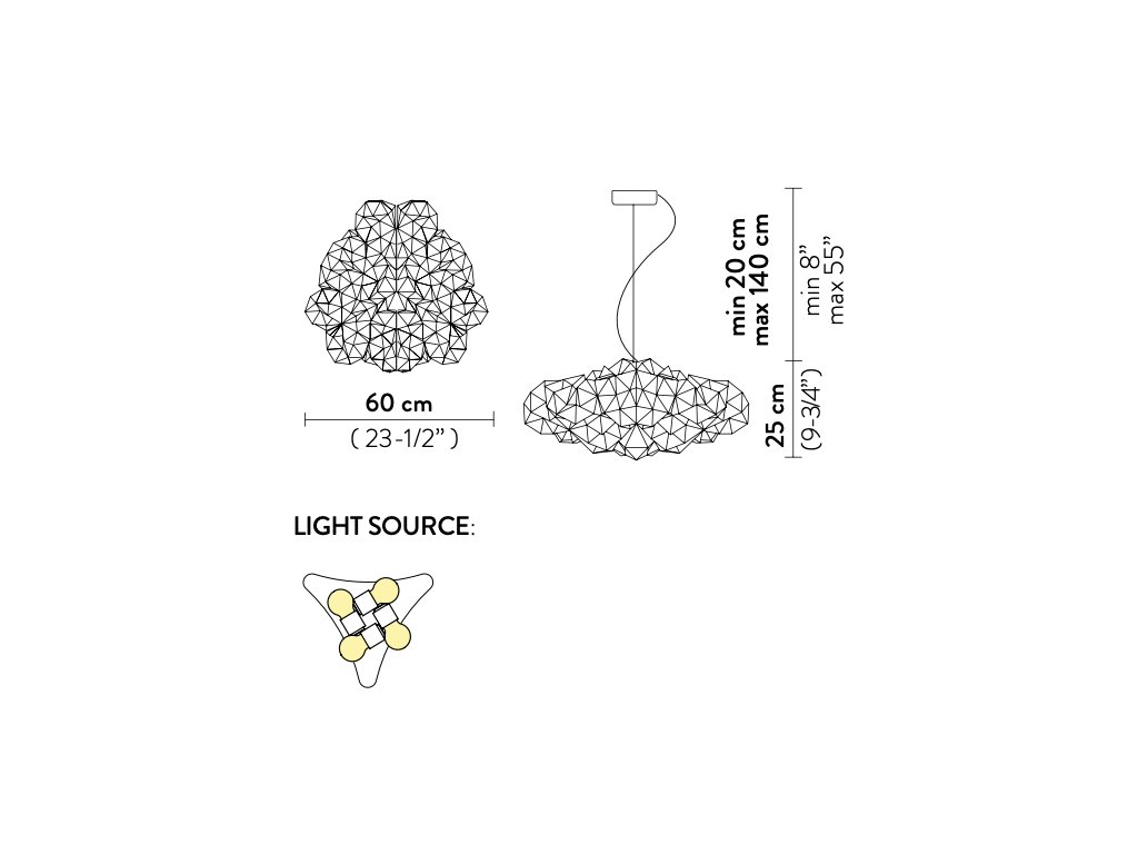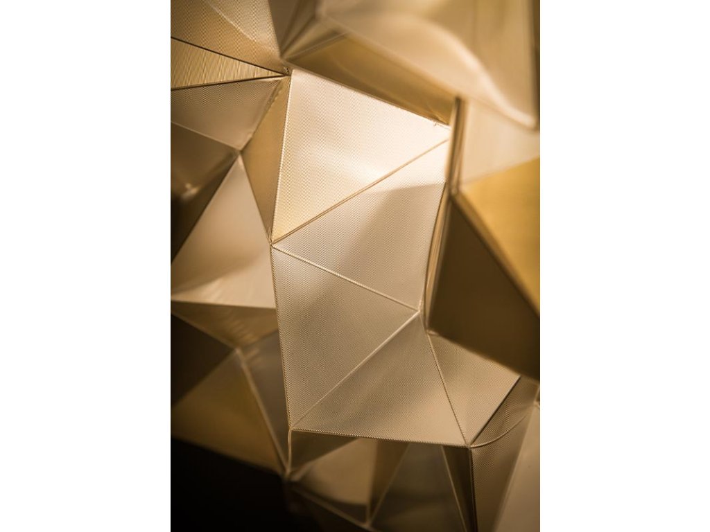 Rovnako ako svetlo dopadá na kryštály vystupujúce zo skalných štrbín a vytvára tak neustále sa meniaci, poetický a mnohotvárny kaleidoskop, je Drusov súčasný pohľad na zvýraznené uhly jemne tlmený centrálnym zdrojom svetla, ktorý prináša hĺbku a harmóniu medzi osvetlením a tvarom. Svietidlo Drusa, ktoré je k dispozícii v stropnej/aplikačnej aj závesnej verzii, pôsobí vďaka diamantovému dojmu a chromatickému tieňovaniu sviežo a moderne v každom priestore. Vďaka potlači Lentiflex® vo verzii Velvet je každý dúhový, hodvábny kus jedinečný.