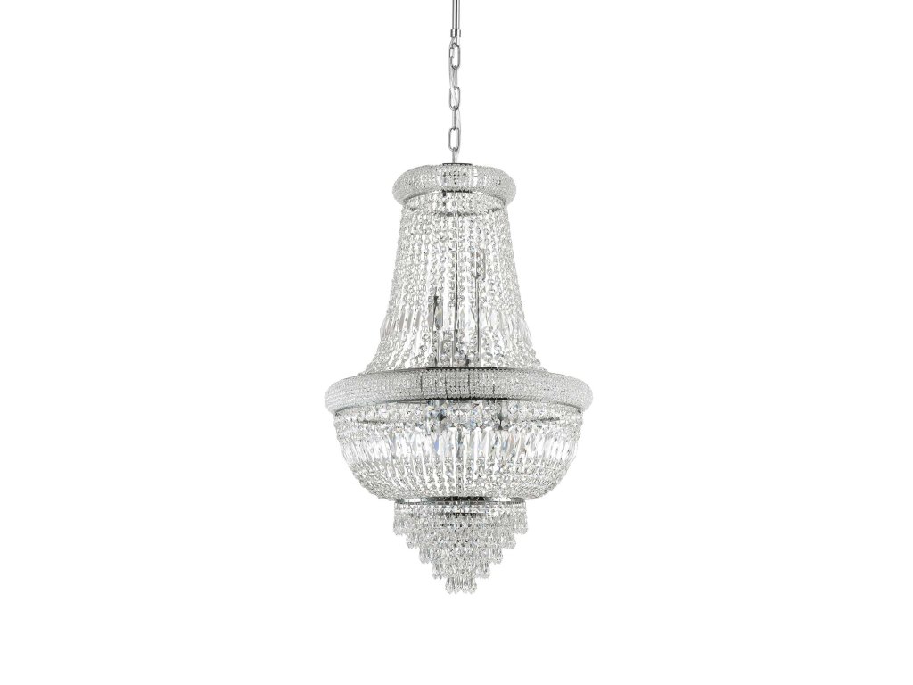 Elegantný závesný luster Dubai SP10 z kolekcie interiérového osvetlenia Ideal Lux v strednom prevedení s priemerom 52 cm vhodne doladí každý interiér v modernom aj klasickom štýle. Ideálne rozsvietia haly, obývacie priestory alebo hotelové interiéry. Svietidlo tvorí kovový rám s lesklou chrómovou povrchovou úpravou, ktorý je dookola ozdobený dekoratívnymi prvkami z brúseného číreho krištáľu v tvare osemuholníkov a hranolov. Štýlové svietidlo je osadené päticami E14 s maximálnym príkonom 10 x 40 W. Žiarovky nie sú súčasťou balenia. Odporúčame použiť úsporné LED svetelné zdroje s dlhou životnosťou. Dodávateľ odporúča zvoliť LED filamentové žiarovky s príkonom 4W a teplotou chromatičnosti 3000K (neutrálne biele svetlo). Dĺžku zavesenia reťaze je možné flexibilne nastaviť pri inštalácii podľa potreby od 98 cm do 190 cm dĺžky. Krytie IP20 je vhodné na použitie do interiéru.Dodatočné parametre