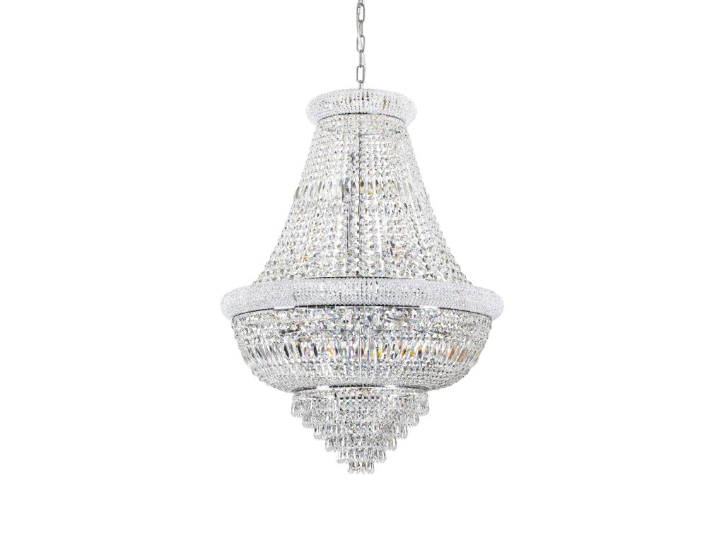 Elegantný závesný luster Dubai SP24 z kolekcie interiérového osvetlenia Ideal Lux v najväčšom prevedení s priemerom 80 cm vhodne doladí každý interiér v modernom aj klasickom štýle. Ideálne rozsvietia haly, obývacie priestory alebo hotelové interiéry. Svietidlo tvorí kovový rám s lesklou chrómovou povrchovou úpravou, ktorý je dookola ozdobený dekoratívnymi prvkami z brúseného číreho krištáľu v tvare osemuholníkov a hranolov. Štýlové svietidlo je osadené päticami E14 s maximálnym príkonom 24 x 40 W. Žiarovky nie sú súčasťou balenia. Odporúčame použiť úsporné LED svetelné zdroje s dlhou životnosťou. Dodávateľ odporúča zvoliť LED filamentové žiarovky s príkonom 4W a teplotou chromatičnosti 3000K (neutrálne biele svetlo). Dĺžku zavesenia reťaze je možné flexibilne nastaviť pri inštalácii podľa potreby od 120 cm do 225 cm dĺžky. Krytie IP20 je vhodné na použitie do interiéru.Dodatočné parametre