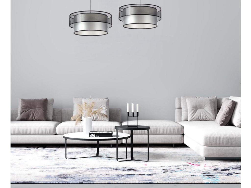 Závesné svietidlo DUO čierna sieťovina v kombinácii s tromi farebnými variantmi - šedá, béžová a krémová. Tienidlo je odolné voči UV žiareniu, takže tkanina počas používania nevybledne. Priemer svietidla je 60 cm. Skvele sa hodí do obývacej izby či spálne.