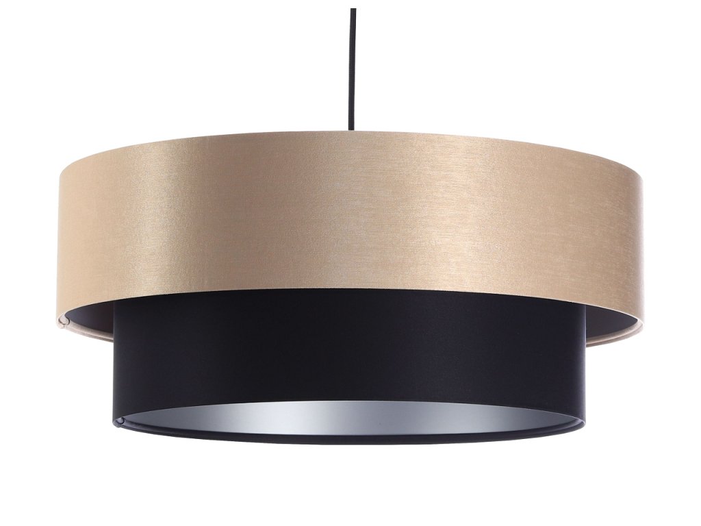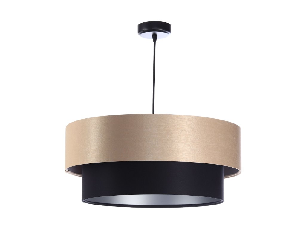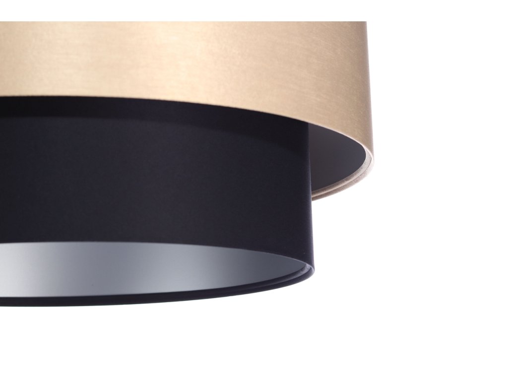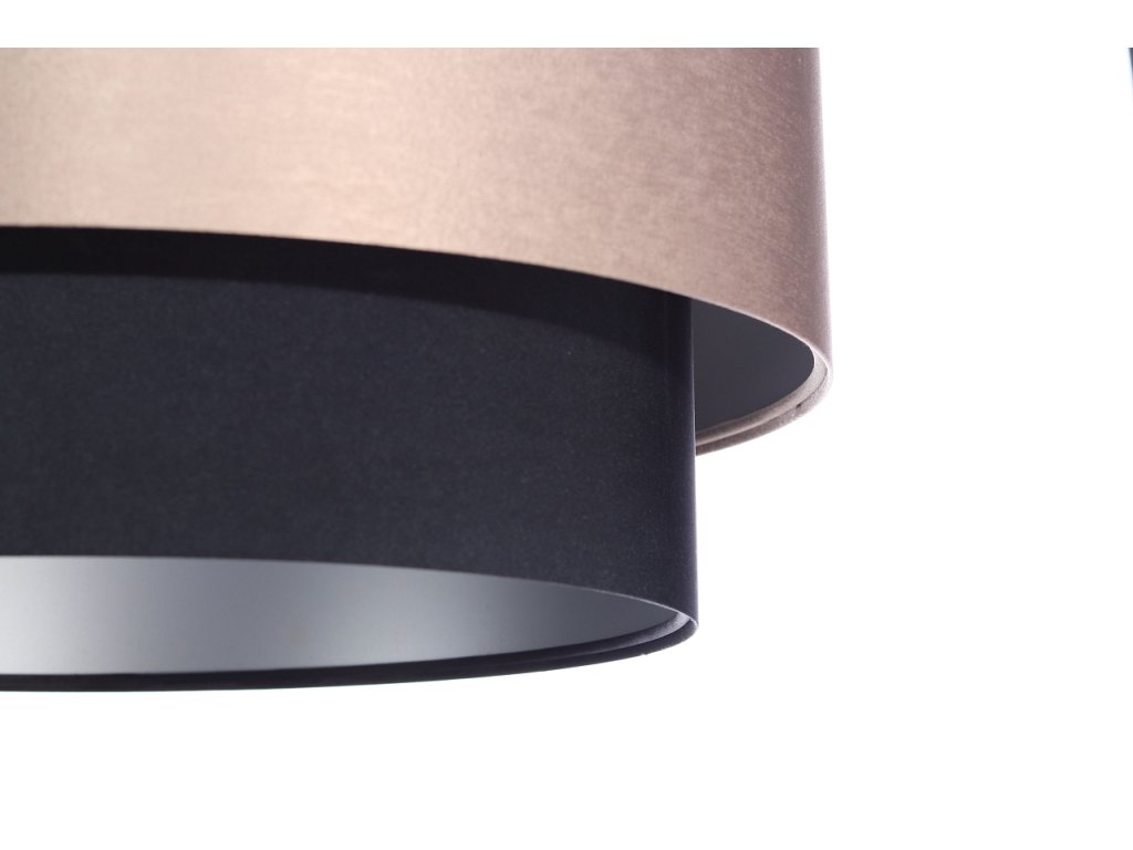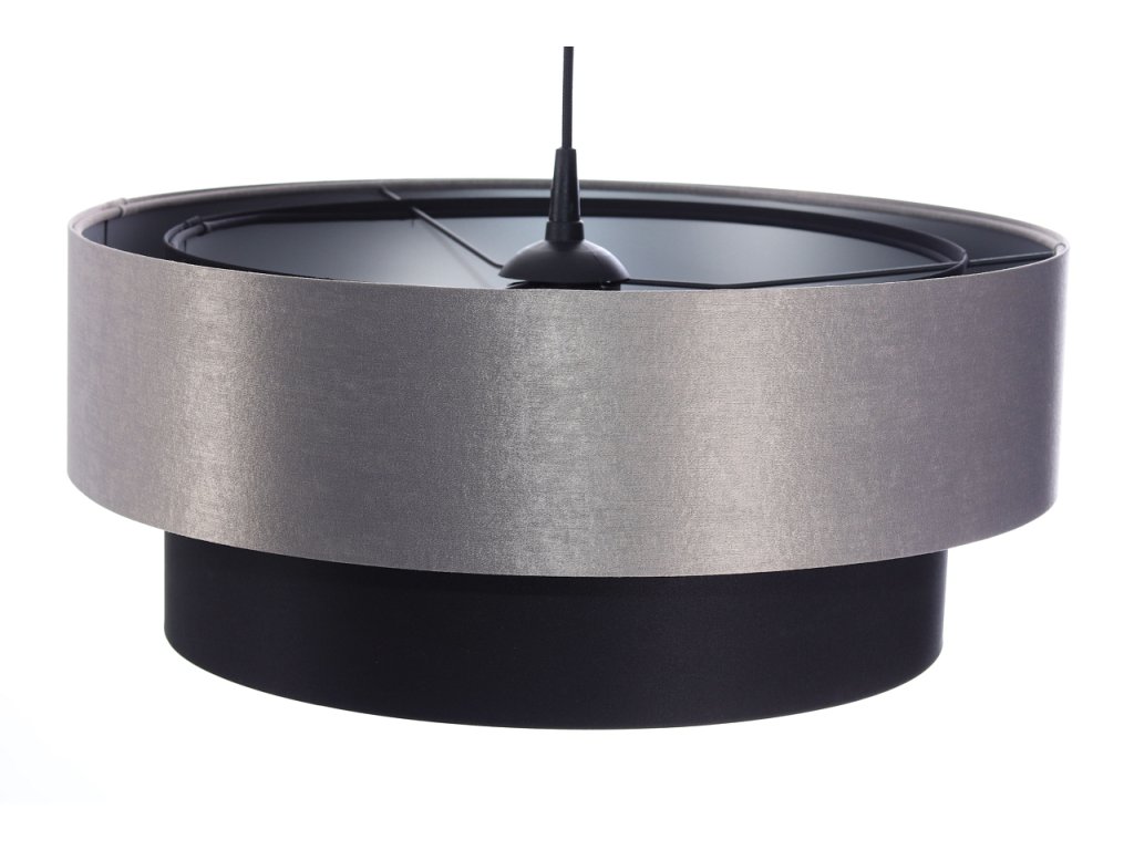 Závesné svietidlo DUO v čiernej farbe v kombinácii s tromi farebnými variantmi - šedá, béžová a krémová. Tienidlo je odolné voči UV žiareniu, takže tkanina počas používania nevybledne. Priemer svietidla je 50 cm. Skvele sa hodí do obývacej izby či spálne.