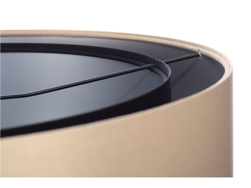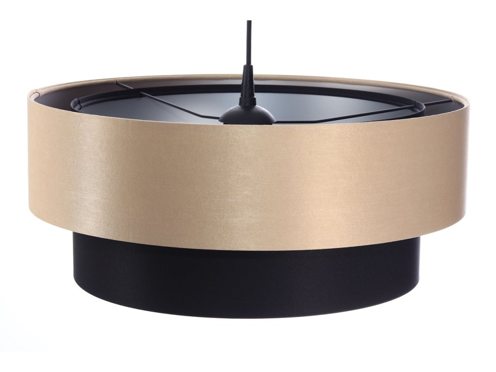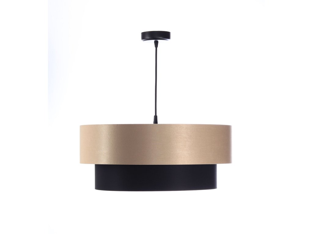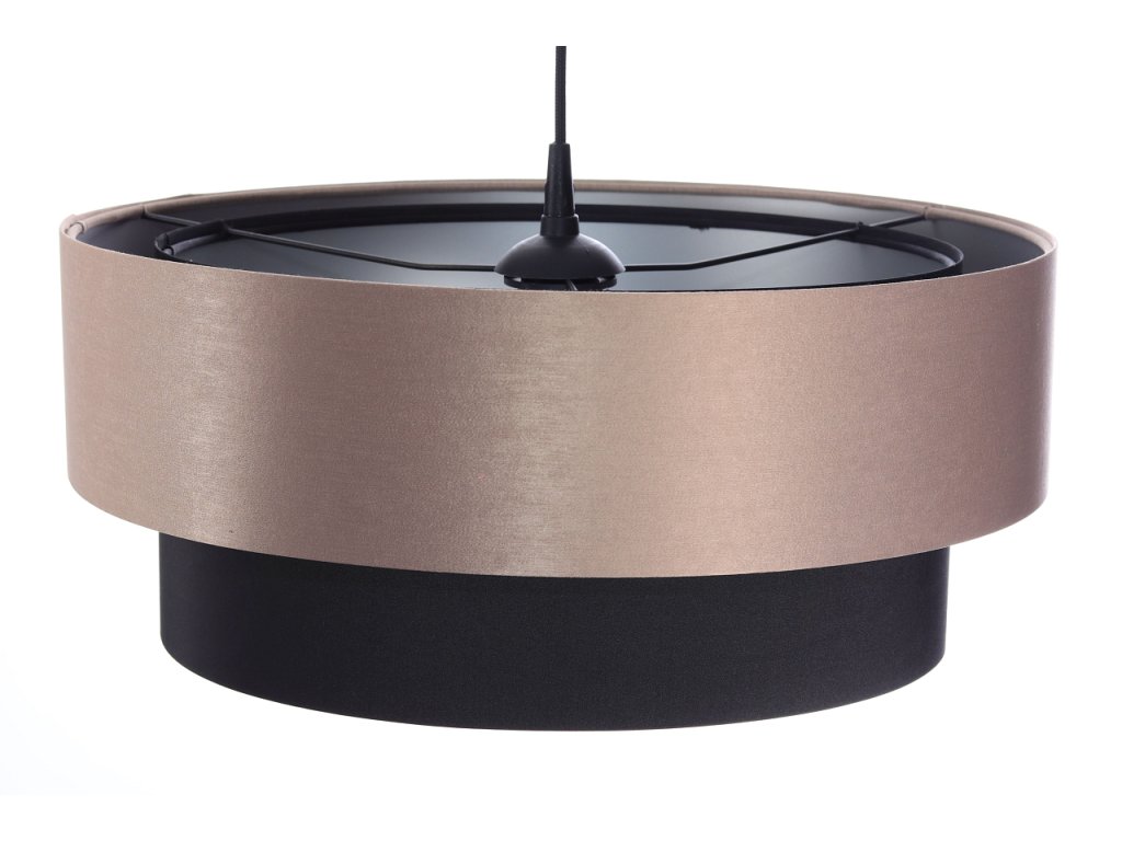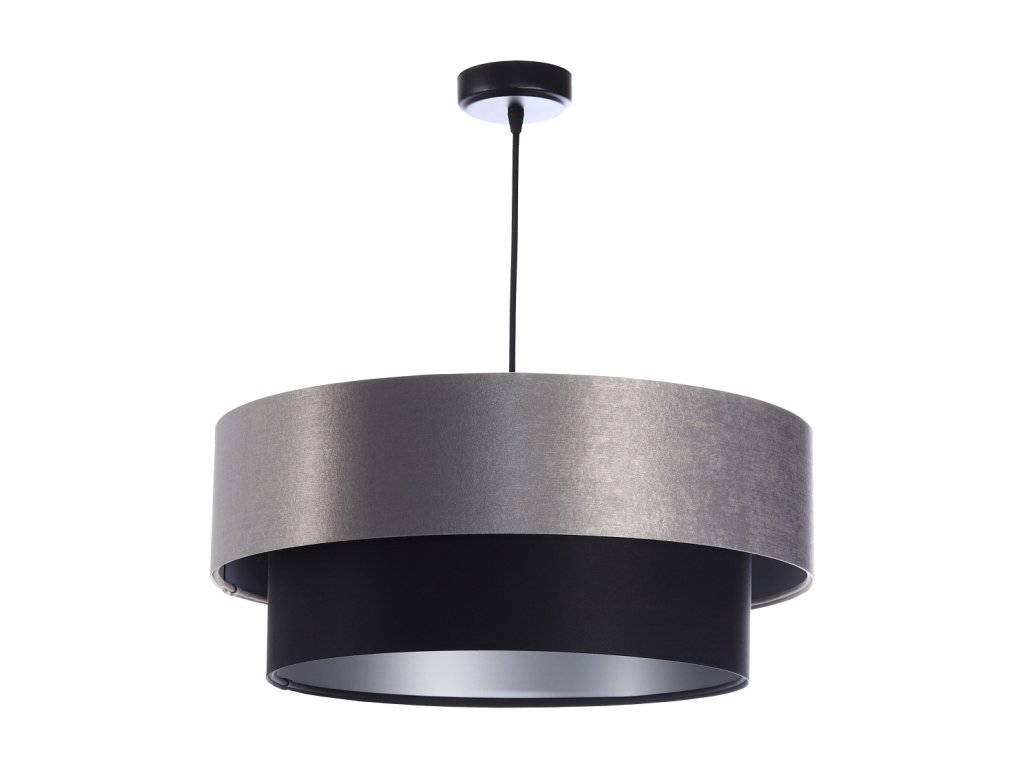 Závesné svietidlo DUO v čiernej farbe v kombinácii s tromi farebnými variantmi - šedá, béžová a krémová. Tienidlo je odolné voči UV žiareniu, takže tkanina počas používania nevybledne. Priemer svietidla je 60 cm. Skvele sa hodí do obývacej izby či spálne.