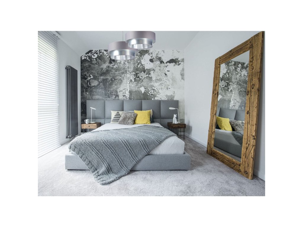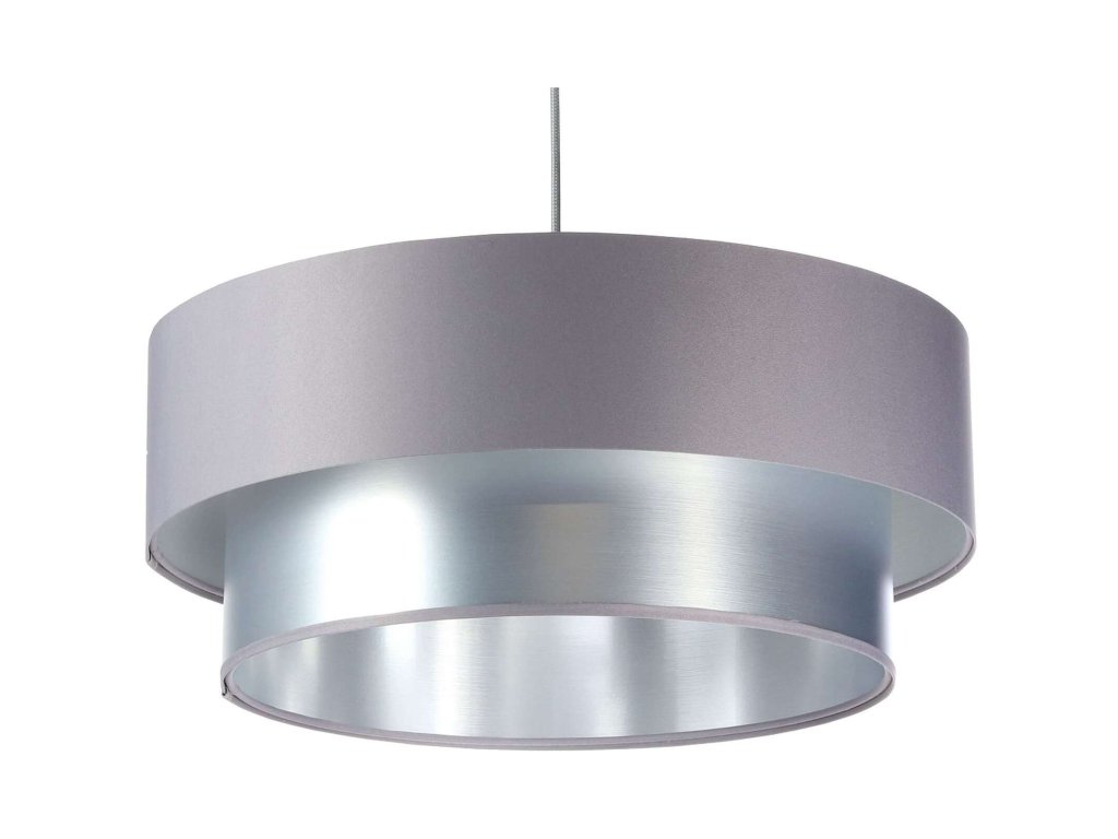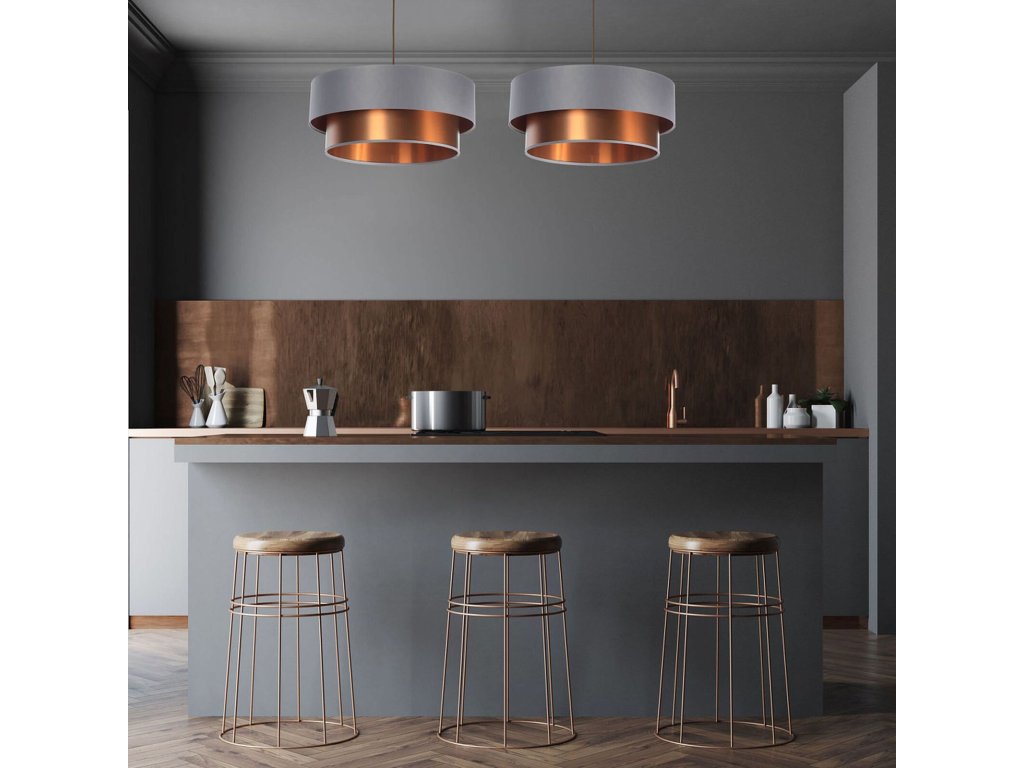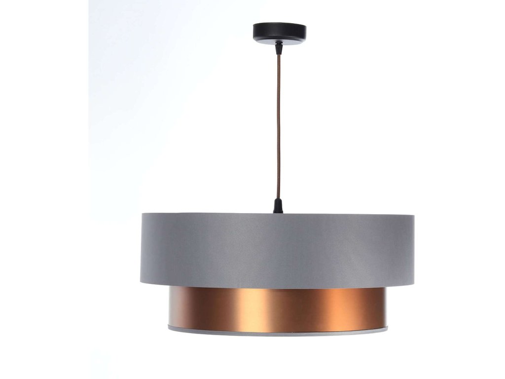 Závesné svietidlo DUO v šedej farbe v kombinácii s tromi farebnými variantmi - zlatá, strieborná a medená. Tienidlo je odolné voči UV žiareniu, takže tkanina počas používania nevybledne. Priemer svietidla je 50 cm. Skvele sa hodí do obývacej izby či spálne.