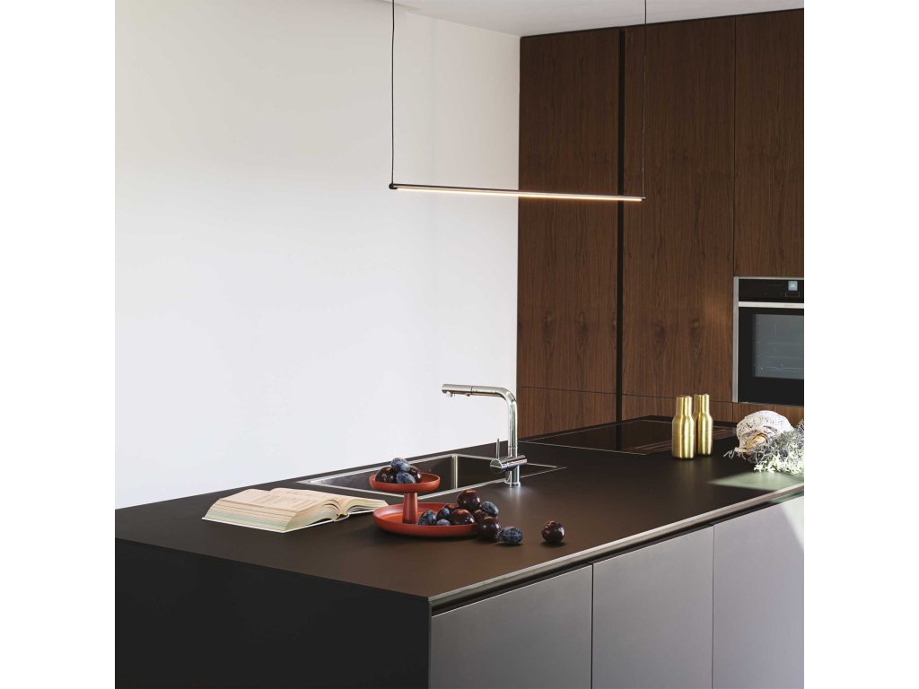 Závesné svietidlo Essence od spoločnosti Ideal Lux je skutočným stelesnením minimalizmu. Pokiaľ túžite po osvetlení domácnosti bez zbytočných príkras, potom je kolekcia Essence tou správnou voľbou. Závesný luster tvorí dlhá tyč z ľahkého a odolného hliníka so zabudovaným LED zdrojom. Svietidlo má decentnú čiernu povrchovú úpravu, a to ako na centrálnej časti, tak aj na stropnú ružicu, pomocou ktorej je luster pri strope prichytený. Vďaka LED zdroju môžete svietidlo používať denne bez obáv z vysokého účtu za elektrinu. Podlhovastý tvar svietidla sa hodí na osvetlenie kuchynského ostrovčeka, kuchyne či jedálenského stola.Dodatočné parametre