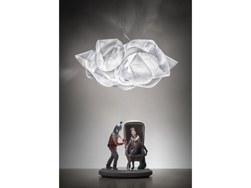 Tkanina vyzerá ako dlhý hodvábny kus látky, ktorý je okolo seba navinutý. Nové, dúhové verzie pre strop a steny majú priemer 60 cm, sú ručne vyrobené z materiálu Lentiflex® a sú vybavené 5 svetelnými zdrojmi, vďaka ktorým sú ideálne na osvetlenie veľkých priestorov. Svietidlo vnesie do každého priestoru nádych elegancie.