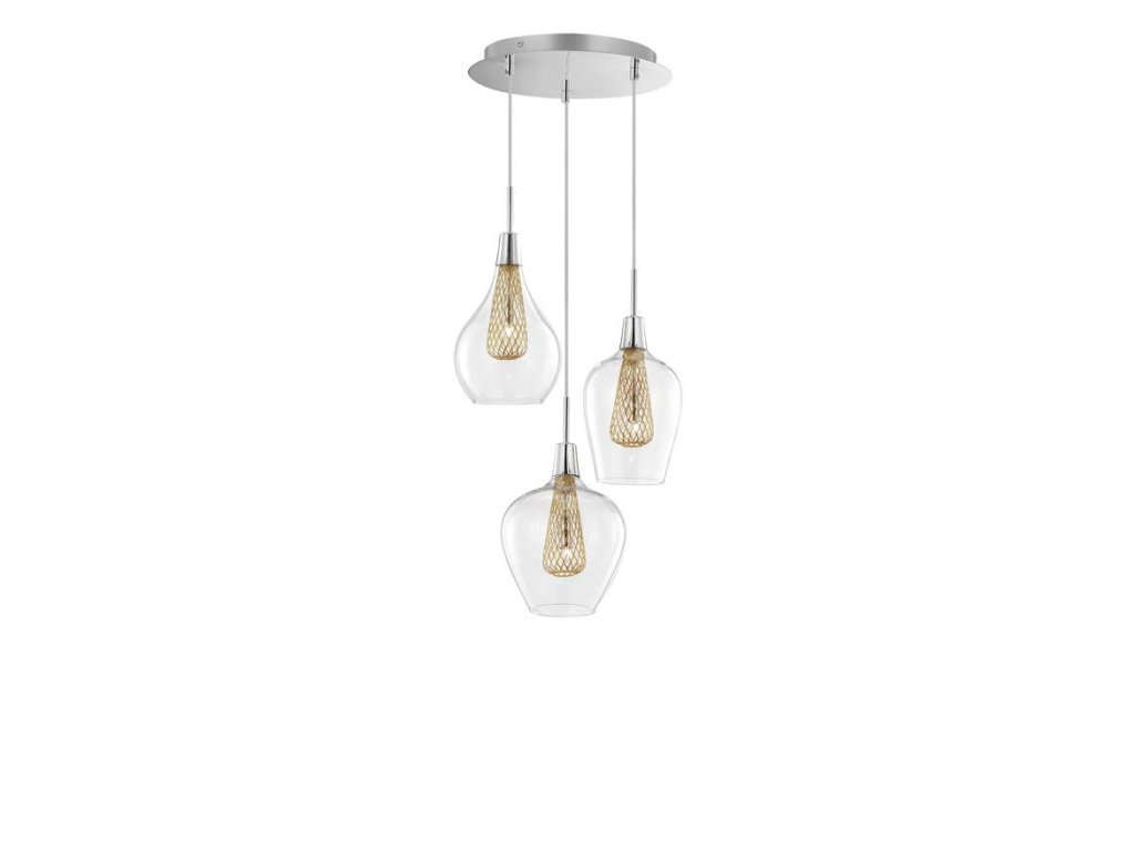 Závesné svietidlo FILO chrómovaný hliník číre sklo a zlatý rám G9 3x5W