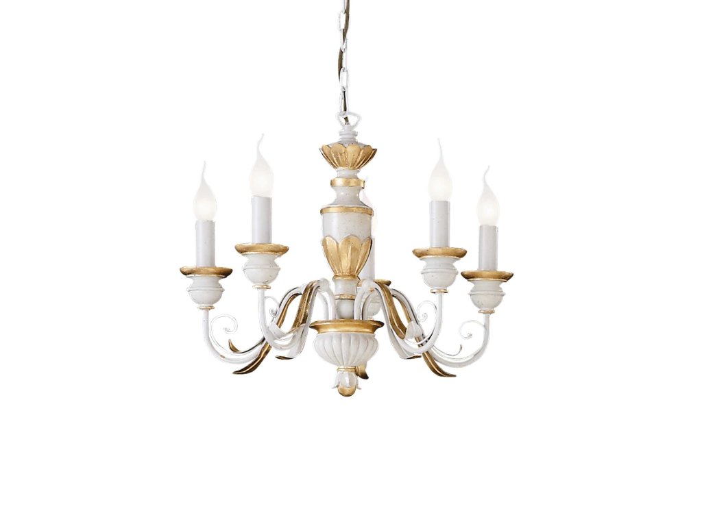 Závesné svietidlo Firenze z kolekcie rustikálneho osvetlenia značky Ideal Lux sa dokonale hodí do klasicky zariadených domácností a hotelov. Doma poslúži ako hlavné osvetlenie v obývacej izbe, kuchyni či jedálni. V hoteloch sa bude skvele vynímať vo vstupnej hale. Vzhľadom k nízkemu krytiu IP20 je určené iba na vnútorné použitie. Jeho telo je zhotovené z kvalitnej živice v bielej farbe s ručne tvarovanými kovovými ramenami. Svietidlo je ručne dekorované zlatými prvkami a osadené päticami E14 pre žiarovky s maximálnym príkonom 5 x 40 W. Zdroje nie sú súčasťou balenia. Dĺžku prívodného kábla je možné nastaviť od 45 cm do 105 cm. Luster je určený na napájanie zo siete na 220-240 V. Celkové rozmery činia 105 x 55 x 55 cm. Vzťahuje sa naň predĺžená záruka 5 rokov.Dodatočné parametre