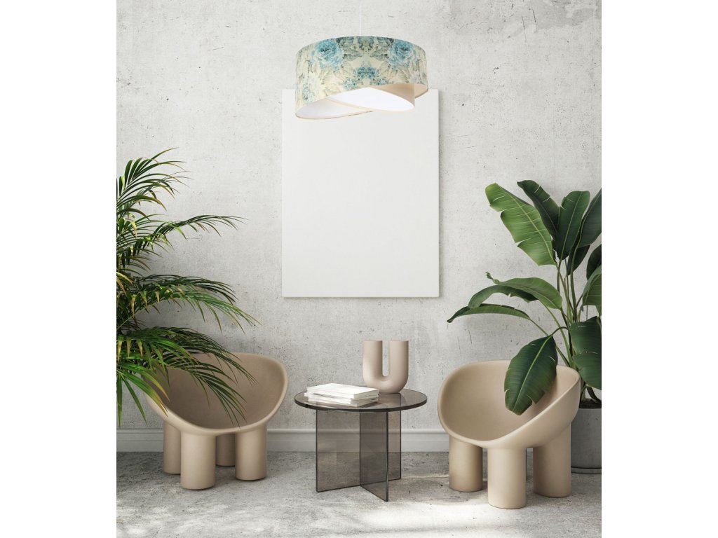 Ručne vyrobené závesné svietidlo Galaxy vyrobené z velúrovej tkaniny s ružami. Priemer svietidla je 50 cm. Skvele sa hodí do obývacej izby, nad jedálenský stôl alebo do spálne.