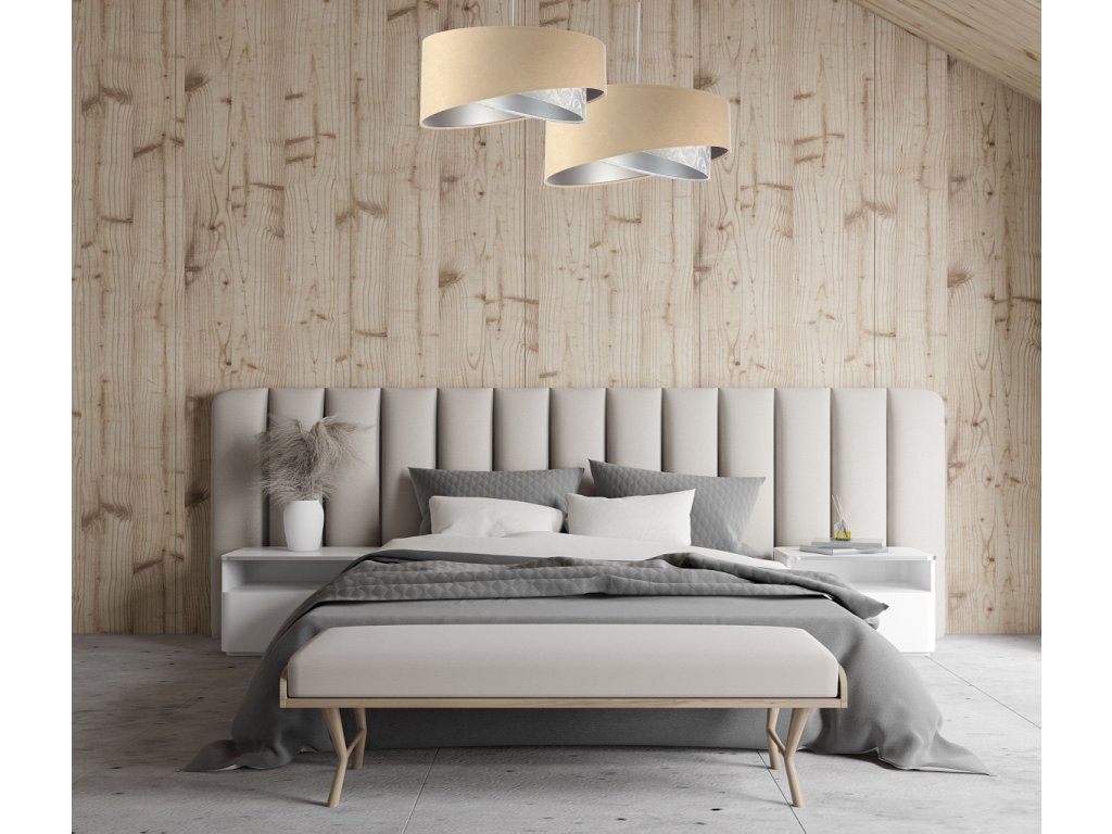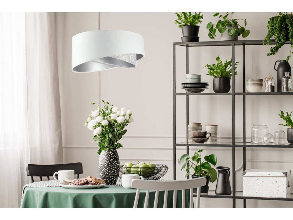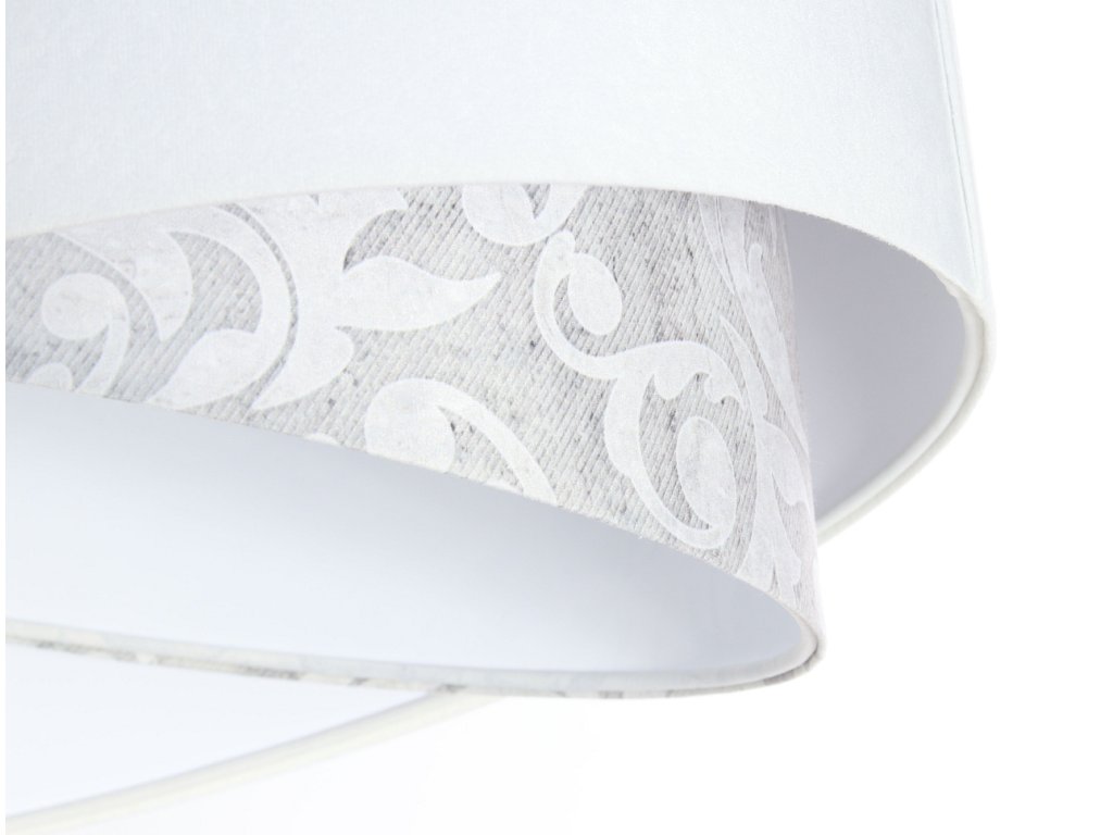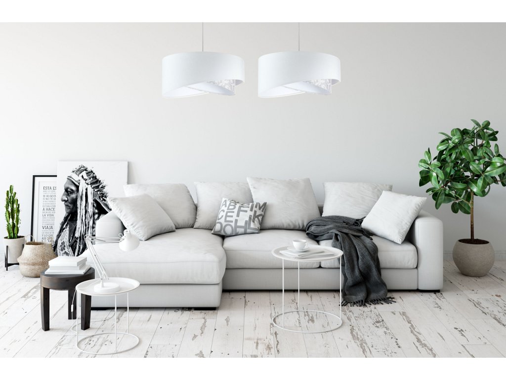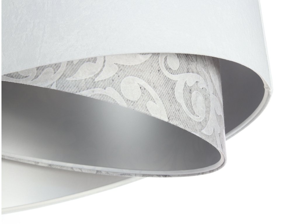 Ručne vyrobené závesné svietidlo Galaxy vyrobené z velúrovej tkaniny s bielymi kvetmi k dispozícii v bielej, krémovej, béžovej alebo šedej farbe. Priemer svietidla je 45 cm. Skvele sa hodí do obývacej izby, nad jedálenský stôl alebo do spálne.