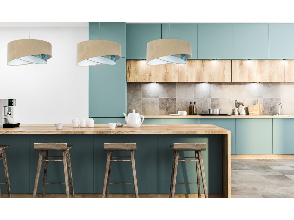 Ručne vyrobené závesné svietidlo Galaxy vyrobené z velúrovej tkaniny k dispozícii v béžovej farbe s obrazcami. Priemer svietidla je 50 cm. Skvele sa hodí do obývacej izby, nad jedálenský stôl alebo do spálne.